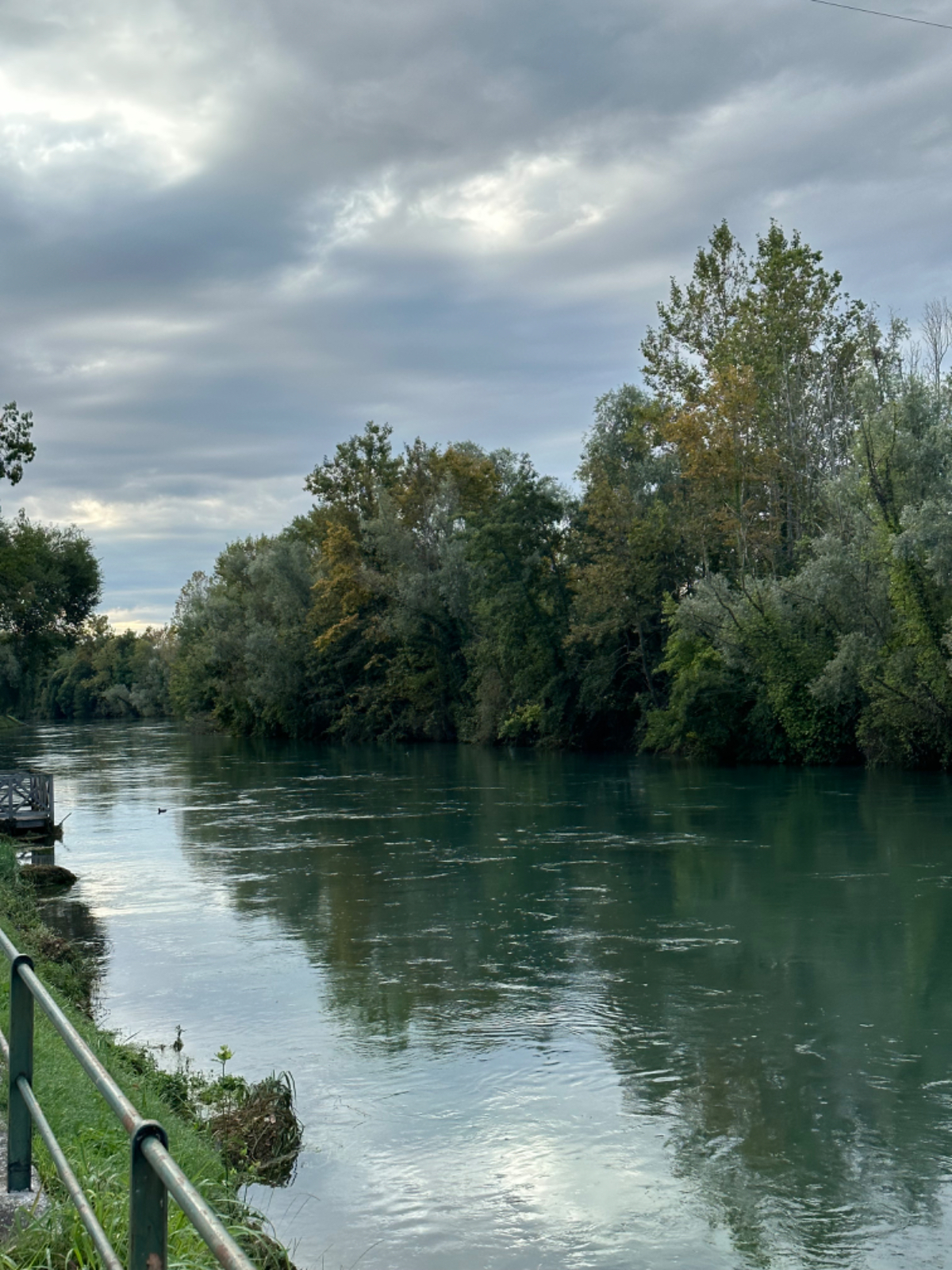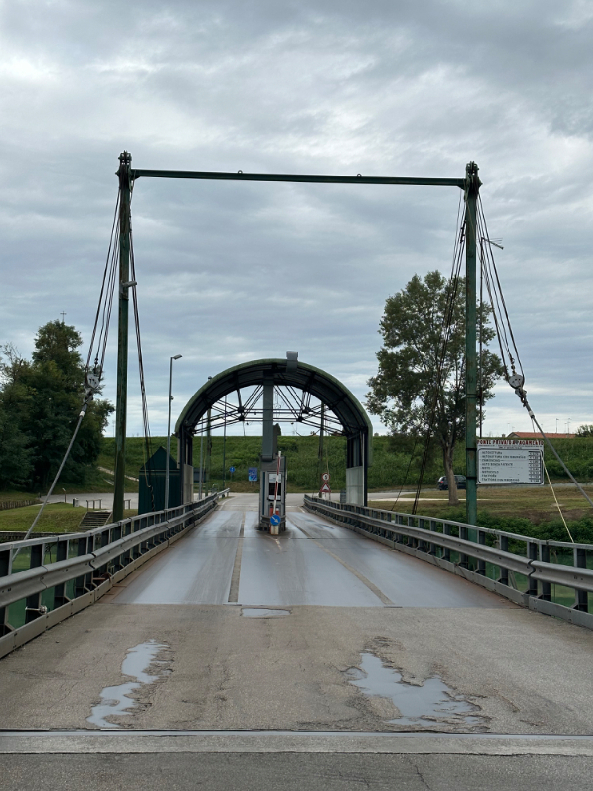 Mich führt mein Weg heute nach Caorle, noch einmal ans Meer, ehe der Herbst dem Sommer gnadenlos ein Ende setzt ;-) Um acht Uhr hatte es heute dreizehn Grad, es ist bewölkt, aber Regen ist nicht angesagt. Erst um die Mittagszeit kommt die Sonne durch die Wolken, und es wird endlich wärmer. Letzte Nacht bin ich gegen ein Uhr wach geworden, weil mir dermaßen kalt war, ich habe gefroren. Zum Glück fand ich im Schrank eine Decke, die Zeit des Schlafens, mit nur einem Leintuch zugedeckt, scheint für heuer vorbei zu sein. Gegen Mittag also konnte ich mein Windblouson ausziehen, wobei, Wind gab es reichlich, zumeist Gegenwind. Ich fahre wieder das volle Programm, Hauptstraßen, Nebenstraßen, Radwege und viele Kilometer auf Dämmen entlang von Flüssen und Kanälen. Ein Abschnitt war eine Premiere, ein kaum sichtbarer Trampelpfad durch eine Wiese, zuerst steil hinunter, dann steil nach oben, keine Chance, da musste ich schieben, aber es war eine Abkürzung ;-) Ein Highlight war eine Brücke über den Piave, mit einer " Mautstation" in der Mitte der Brücke. Da saß tatsächlich ein Mann drinnen, der von den Autofahrern Wegemaut kassierte, mich hat er durchgewunken. Einer meiner ersten Urlaube, ich glaube ich war sechzehn, führte mich nach Jesolo. In den Folgejahren fuhren wir des Öfteren nach Italen, vor allem um Mode einzukaufen. Damals, noch vor dem großen Erdbeben, gab es noch keine Autobahn durch das Kanaltal, und auch nicht über die Pack, es war eine abenteuerliche, lange Fahrt. Heute unvorstellbar! Und immer waren mir hier Wegweiser nach San Donà di Piave aufgefallen, aber nie war ich dort, bis heute. Ich will ja nicht sagen, nicht hier gewesen zu sein wäre ein großes Versäumnis, aber abgehakt ist abgehakt. Ebenso die Flüsse Sile, Piave und Livenza, oft gelesen, jetzt gesehen. Entlang von Flüssen radle ich dahin, auf endlosen Geraden, zur linken Seite immer die Berge die auf mich warten, aber nicht heute, vielleicht schon morgen ....