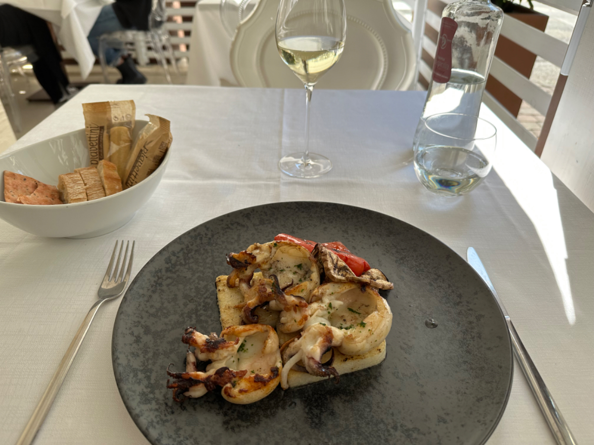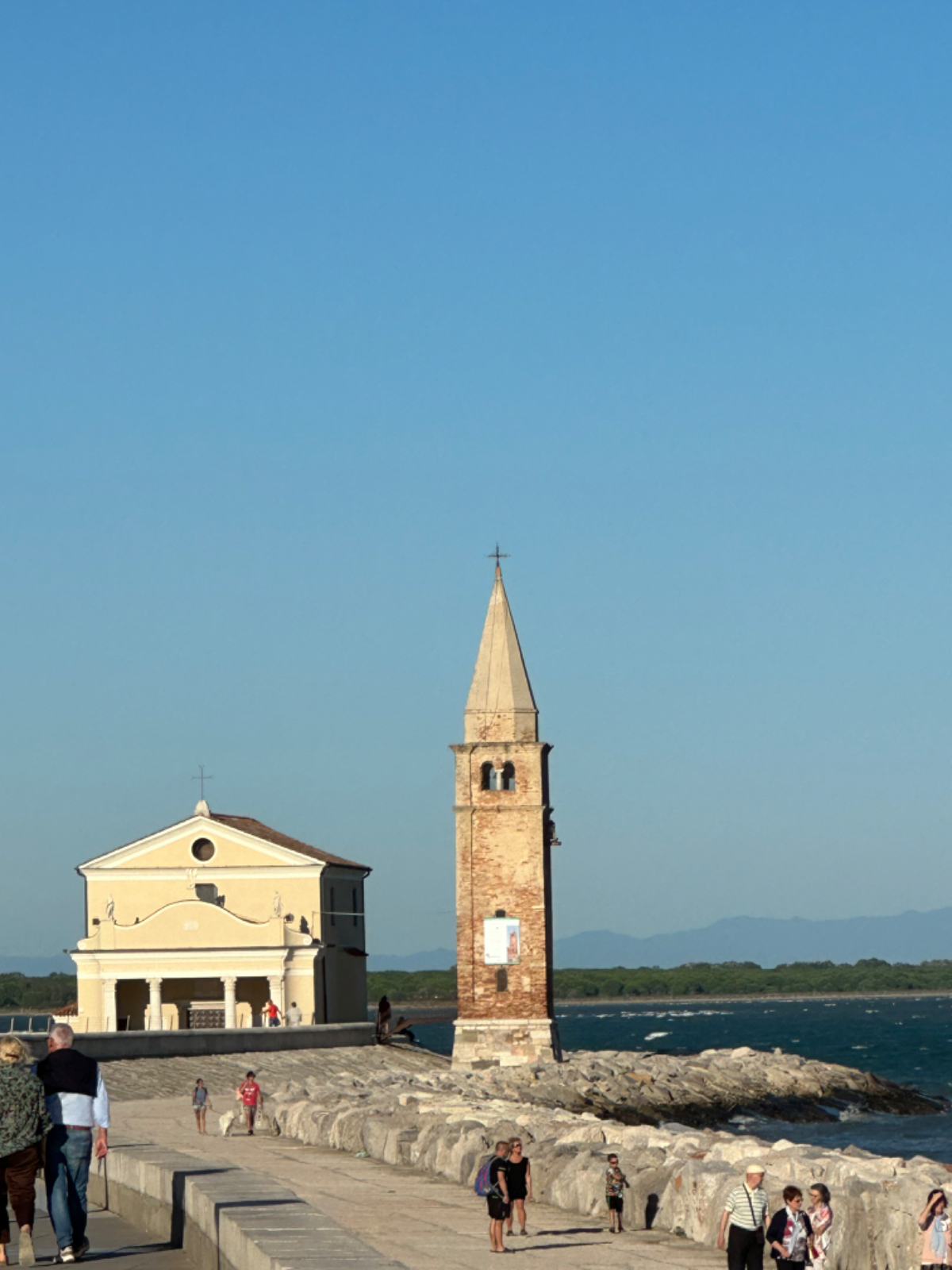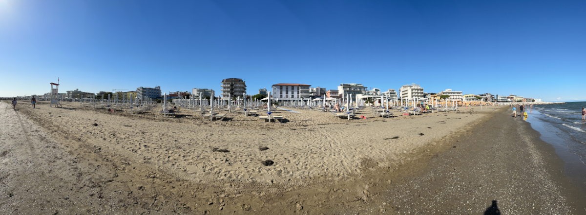 Viel Abwechslung gab es heute nicht, aber alles gut. Um dreizehn Uhr erreiche ich das erste Ortsschild von Caorle, nach über siebzig Kilometer Fahrt. Das Hotel liegt an einer (in der Nachsaison) ruhigen Straße, frühes Einchecken kein Problem. Das Rad kann im Foier unter der Treppe stehen bleiben, die Tür ist in der Nacht verschlossen. Heute lasse ich es mir richtig gut gehen, ich esse in einem angesagten Fischlokal gebackene Thunfischbällchen, danach gegrillte Calamari mit gegrilltem Gemüse, dazu ein Glas Weißwein, astrein! Ich liebe eine gute Pizza, aber nach Wochen Pizza und Pasta tut Abwechslung gut. By the way, ich freue mich schon sehr auf ein Wiener beim Dorfwirt meines Vertrauens, beim Gasthaus Prall :-) (keine bezahlte Webung, zutiefste Überzeugung) Am Nachmittag lasse ich mir am Strand die Sonne auf den gut gefüllten Bauch scheinen, man merkt, die Saison ist in ihren letzten Tagen, der Strand ist fast menschenleer, obwohl es mit 26 Grad noch sehr angenehm warm und sonnig ist. Direkt am Wasser bläst ein starker Wind, das Wasser wäre mir zum Baden bereits zu kalt, es sind auch nur ganz wenige Menschen am oder im Wasser. Ich habe gehört, Caorle hat eine schöne Altstadt, die will ich sehen, also los. Es ist nicht weit dahin, auch hier hält sich der Menschenauflauf in Grenzen, allerdings ist gefühlt jeder zweite Deutscher oder Österreicher. Aber die sehr kleine Altstadt hat Charme, bunte, kleine Häuser, jede Art von Shops und Caorle hat auch einen schiefen Turm, könnte auch eine optische Täuschung sein ;-) Zurück im Hotel beginne ich mit dem Blog, um 19 Uhr musst ich unterbrechen, ich habe Abendessen gebucht, wie gesagt, ich lasse es mir heute gut gehen. Eine zweite Nacht, wie ursprünglich geplant, werde ich dennoch nicht hier bleiben, morgen geht es in Richtung Berge, nach Spilimbergo. Buona Notte :-)