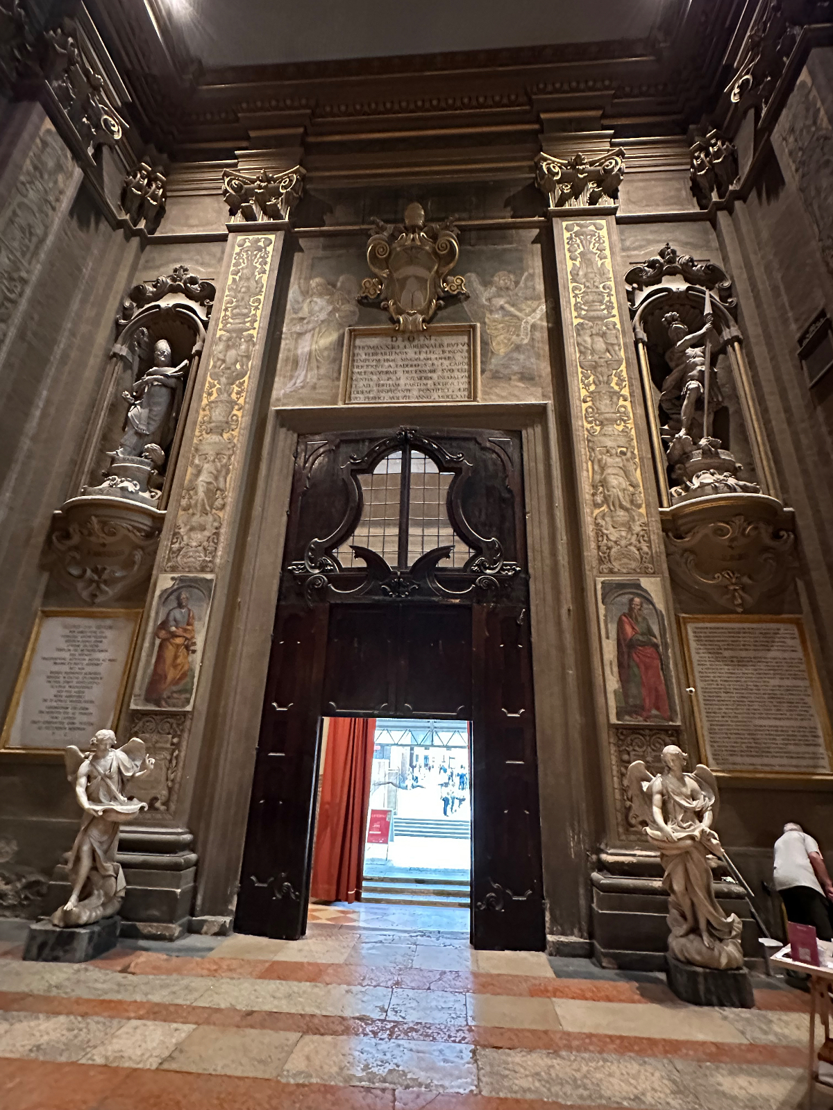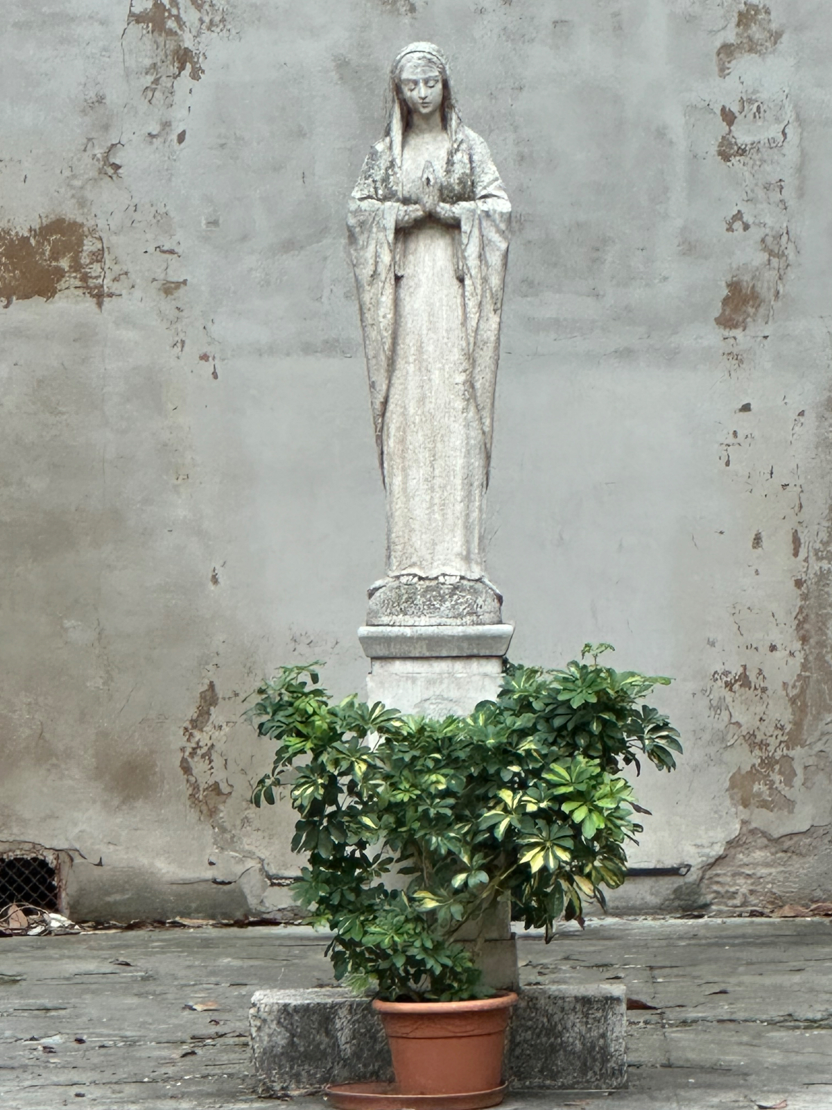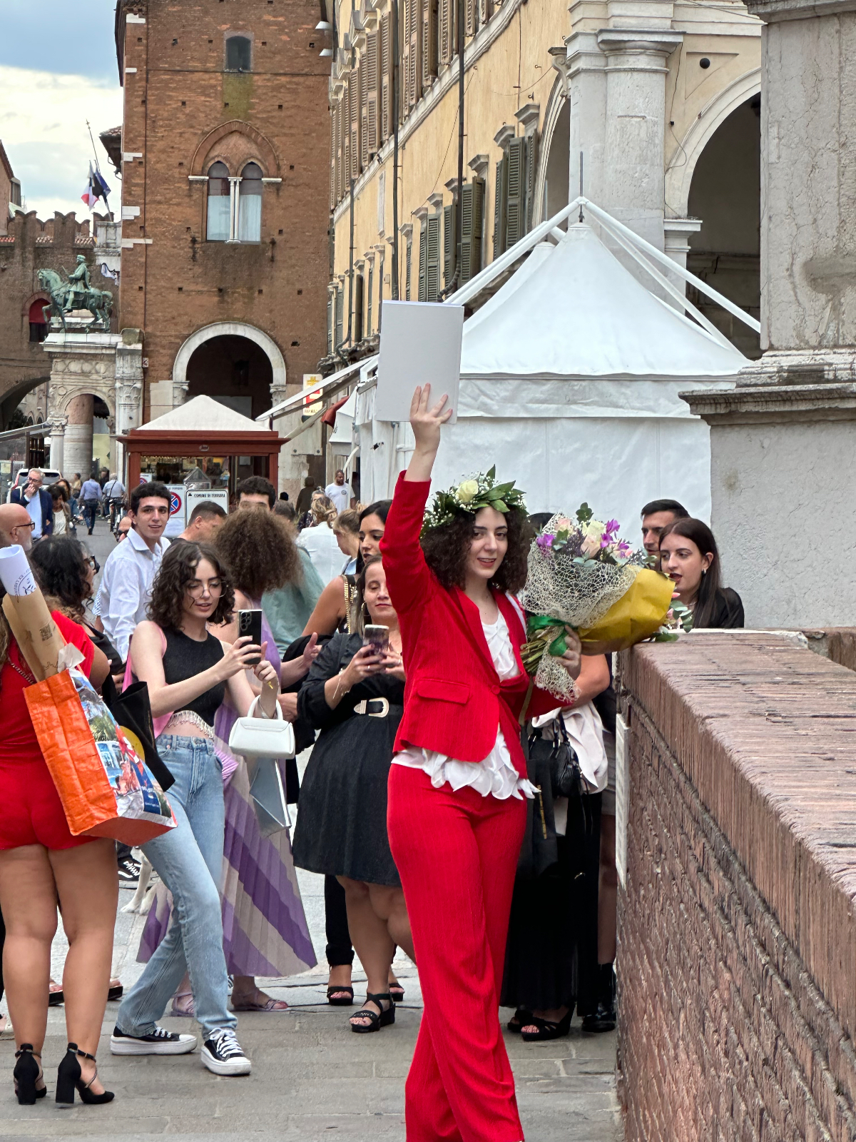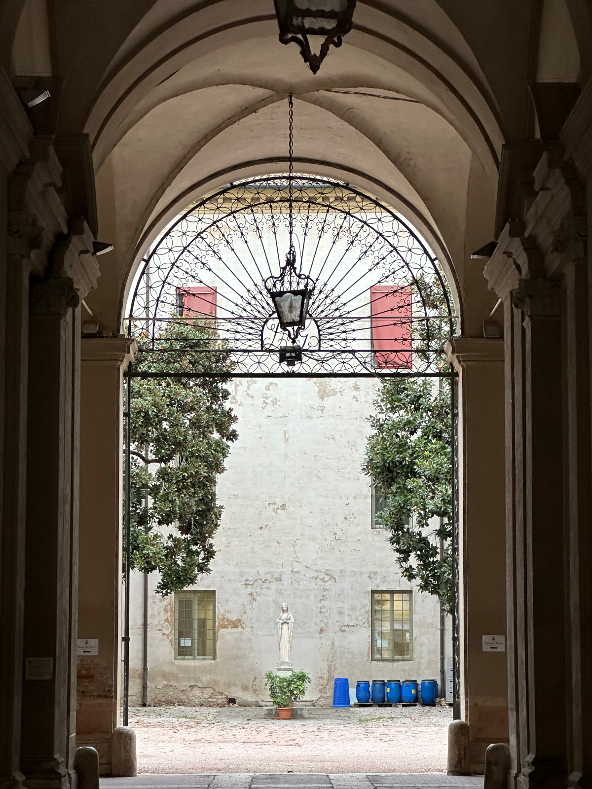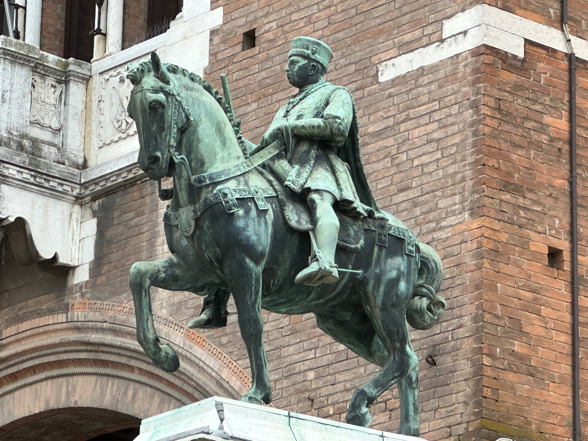 Was ich bisher vergessen habe zu erwähnen, vorgestern als ich bei casa Torre ankam, hatte ich genau 2022km am Display, ich schätze, so 2500km werden es in Summe werden, bis ich zuhause bin. Heute ist seit längerem der erste Tag, an dem es morgens über 20 Grad hat, passt gut. Gestern habe ich erstmals mein „verbotenes“ Rücklicht angeschaltet, ich habe es aus Amerika importiert, es ist bei uns nicht erhältlich, weil verboten. Es ist so stark, dass der nachkommende Fahrer geblendet wird, wenn er direkt hinter mir fährt, aber ich bin schon aus einiger Entfernung wahrnehmbar, das ist bei schlechter Sicht und dichtem Verkehr wie eben gestern, ein echter Bonus! Italienische Straßenfahrer haben zum Teil auch ein sehr starkes Rücklicht, ich nehme an, hier ist es erlaubt. Meine heutige Tour geht bzw. fährt nach Ferrara, wieder entlang einer stark frequentierten direkten Verbindungsstraße. Zum Unterschied zu gestern, führt über ganz lange Streckenabschnitte ein schöner Radweg parallel zur Straße, zumeist auch baulich getrennt, ein Radfahrer Paradies. Die zuständigen Politiker in dieser Gegend Bologna und Ferrara müssen wohl selbst Radfahrer sein ;-) Ferrara hat darüber hinaus den Ruf, Italiens Radfahrer Hauptstadt zu sein. Es ist zwar sehr laut entlang der Straße, aber ich radle ganz entspannt dahin, kein Stress. Die Berge sind längst aus meinem Rückspiegel verschwunden, vor mir liegt wieder die schon bekannte Po Ebene. Von den heutigen 67 Kilometer der Gesamtstrecke, waren es sicher 45 Kilometer Radwege. Als der Radweg endet, ändert sich auch das Wetter, es beginnt leicht zu regnen. Regenschutz auf den Helm, Regenjacke an und das xx-starke Rücklicht ein. Ich fahre wieder auf scheinbar unendlich langen, geraden Straßen dahin, das Ende kann man nur ahnen. In der Ferne taucht schemenhaft ein Kirchturm auf, dort werde ich einmal einen Unterstand suchen und im Internet nachsehen, wie sich das Wetter entwickeln wird. Ich komme näher, aber nicht nahe, denn die Straße macht einen 90 Grad Schwenk, und vor mir die nächste unendlich lange Gerade, und es beginnt stärker zu regnen. Unter einem großen Baum bleibe ich schließlich stehen, und krame aus einer Packtasche – natürlich ganz zuunterst – meine Regenhose hervor, und es geht weiter. Der paradoxe Nachteil dieser regendichten Bekleidung ist der, dass sie dicht ist. Von außen dringt kein Wasser ein, trotzdem spüre ich, wie mir innen das Wasser den Körper hinunter rinnt. Es ist kühler geworden, da wird das Köcheln im eigenen Saft fast schon wieder zum Vorteil, solange man sich bewegt. Deshalb beschließe ich auch, keinen Halt mehr einzulegen, sondern schnellstmöglich zu meinem Quartier zu radeln. Kurz nach zwölf erreiche ich schon Ferrara, ich muss aber durch die Stadt, mein Hotel liegt in einem Vorort. Kein Problem, dass ich so früh da bin, mein Zimmer ist fertig, ich kann einchecken. Mein Rad ist im Heizkeller sicher verstaut, und ich habe mir fest vorgenommen, es heute auch nicht mehr zu bewegen, ganz egal welche Sehenswürdigkeiten die City auch zu bieten hat. Nach dem Duschen gehe ich ins hauseigene Restaurant und esse ein als lokale Spezialität angepriesenes Nudelgericht, Bandnudeln, hier vorwiegend Eierteigwaren! mit einer Tomatensoße mit einer nur hier erhältlichen Salami. Dazu ein Glas Rotwein, vino della casa und zum Abschluss ein Tiramisu. Eigentlich wäre ich jetzt bereit für ein Mittagsschläfchen, aber da kommt mir die Statistik in den Sinn, die mir Ingo vor einigen Tagen geschickt hat. Von 1. September bis zum 13. September hat dieser Blog 585 verschiedene Besucher mit 1.223 Besuchen 10.673 Seitenaufrufen und 107.760 Zugriffen verzeichnet, und heute ist bereits der 22! Da bin ich all diesen Besuchern und zahlreichen Unterstützern wohl schuldig, ein paar Fotos aus der Region zu liefern. Ich mache mich auf und chartere ein Taxi. Der Fahrer erzählt mir allerhand interessantes zur Stadt, eine zur Gänze vorhandene Stadtmauer die begehbar und mit dem Rad befahrbar ist, (Ferrara ist eine der Städte mit der höchsten Fahrraddichte der Welt!), wir fahren am Palazzo di Diamanti mit seiner Fassade von 8000 pyramidenförmigen Steinen vorbei, und er zeigt mir das Geburtshaus von Ettore Bugatti, der Namensgeber der gleichnamigen französischen Automarke. Lustig ist auch, dass hier in Ferrara einer der häufigsten Familiennamen Ferrari ist :-) Mitten im Zentrum, beim Castello Estense, steige ich aus dem Taxi und bedanke mich für die interessante Fahrt. Ich vermute, heute muss hier Sponsion oder Promotion gefeiert werden, überall stehen mit einem Blumenkranz geschmückte junge Frauen inmitten von Freunden und Familie, die sie feiern und fotografieren. Über den Platz und in den Gassen wird lauthals gesungen, mit dem Refrain Dottore, Dottore…. Es ist insgesamt angenehm viel los, kein Vergleich zu den unlängst besuchten Kult Städten. Wieder schlendere ich durch die Gassen und über Plätze, lass mich treiben und fotografiere auch, und gönne mir ein Eis. Diese Fotos kosten mich 48 Euro fürs Taxi, aber ich bin sehr froh, dass ich mich aufgerafft habe, Ferrara wird mir sehr angenehm in Erinnerung bleiben. Obwohl auch hier in und um die Stadt ein enormes Verkehrsaufkommen herrsch, ist die Luft klar. Ganz anders gestern in Bologna, dort ist die Luft von Abgasen geschwängert, es ist kaum auszuhalten gewesen. Marteen und Dominique, die beiden Holländer von der Casa Terre haben mir erzählt, wenn sie Sehnsucht nach der Stadt haben, fahren sie nach Bologna. Beide sind Raucher, aber wenn sie nach einigen Tagen Bologna wieder nach Hause kommen, spucken sie schwarzen Schleim aus. Ekelhaft, aber nachvollziehbar, wenn man da gewesen ist. Mittlerweile ist es 20:15 ich werde versuchen noch heute Fotos hochzuladen, habe aber wenig Hoffnung dass es hinhaut, die Internetverbindung ist sehr, sehr, sehr mau…..
