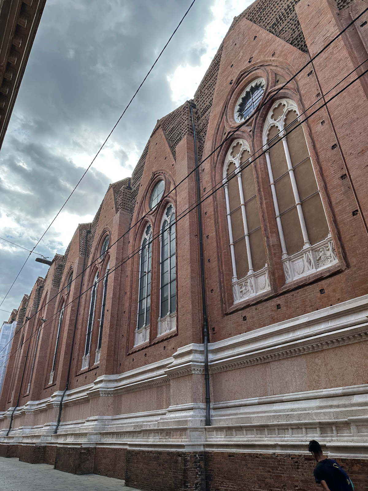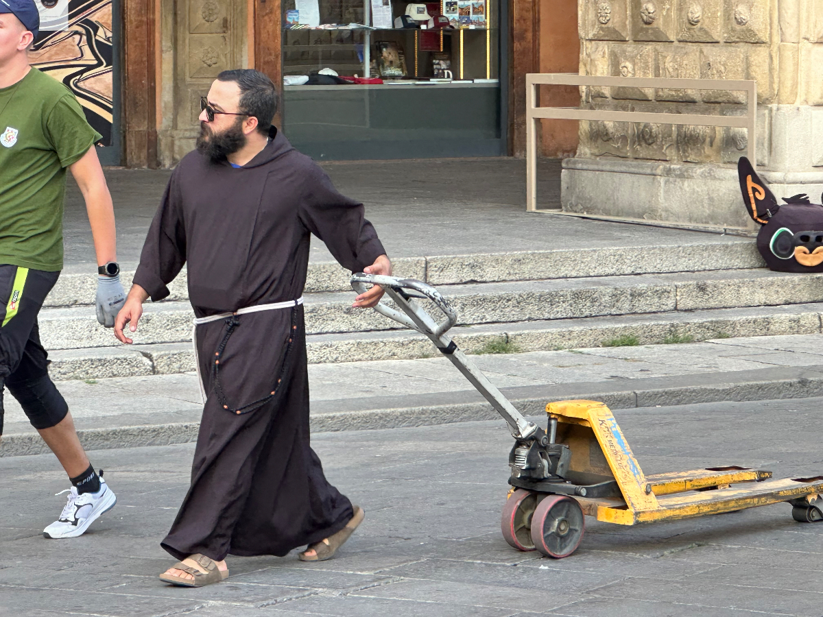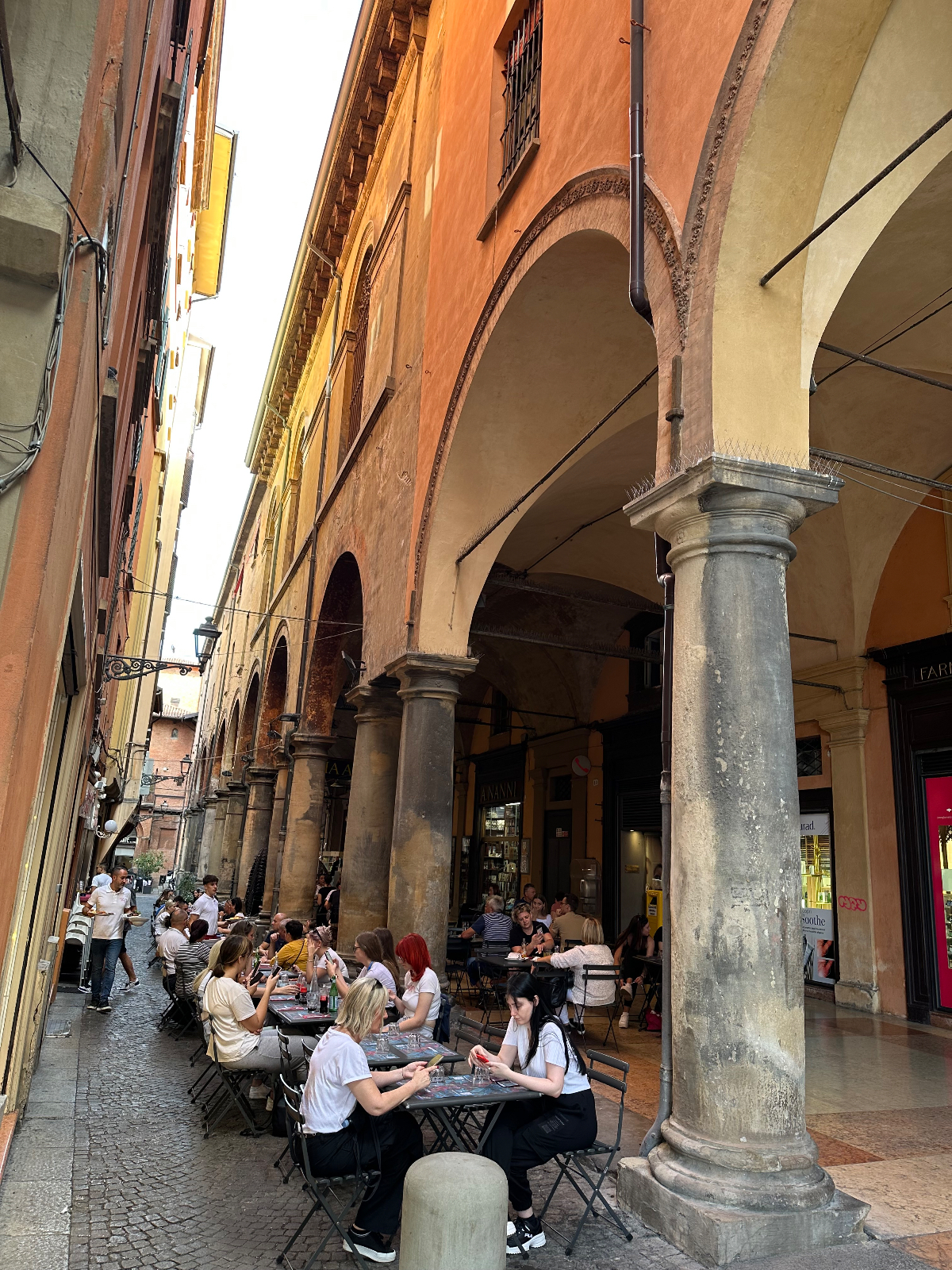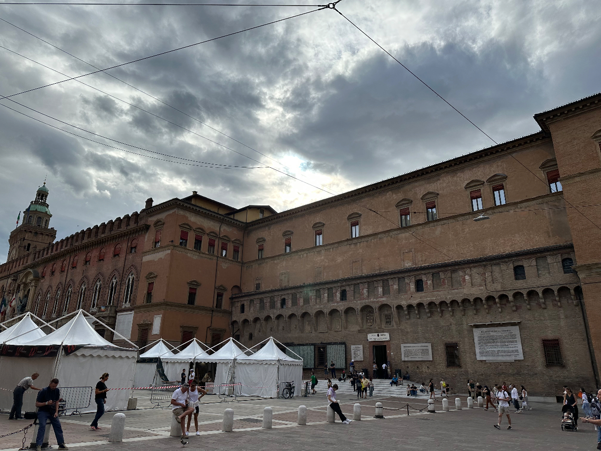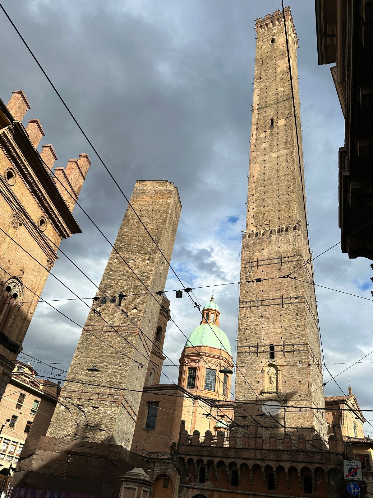 Nach dem Frühstück, welches mir die beiden wieder liebevoll zubereitet haben, verabschiede ich mich, wir wünschen uns eine gute Reise, sie fahren ja auch morgen. Ich glaube, so spät wie heute bin ich noch gar nie weggefahren, aber es liegen ja gerade einmal 55 Kilometer vor mir. Dass die härtesten Kilometer meiner Reise dabei sein werden, wusste ich da noch nicht. Runter vom Berg, den ich gestern noch erklommen habe, es hat frische 17 Grad. Wenn es in den nächsten Tagen weiter hinunter geht mit der Temperatur, dann ist das warme Gewand, das ich bisher nicht gebraucht habe, doch nicht unnützer Ballast. Lieber wäre es mir, wenn ich es nicht brauche! Für fast 30 Kilometer bin ich heute aktiver Verkehrsteilnehmer auf dieser stark befahrenen Bundesstraße in Richtung Bologna. Ich habe in den letzten Wochen doch schon viele Kilometer unter erschwerten Bedingungen absolviert, aber heute wird es noch einmal so richtig hart. Es herrscht vor allem ein starker Schwerverkehr auf dieser Strecke, ein Radfahrer ist hier ein einziges Hindernis. Waren es bisher an stark befahrenen Straßen meist eher kurze Abschnitte, an denen es brenzlig wurde, so trifft es heute auf die ganze Strecke zu. Die Straße ist nicht breit genug, um gefahrlos überholt zu werden, und nach rechts bleibt mir kein Zentimeter Reserve. Mein Adrenalinspiegel muss astronomisch hoch sein, ich spüre nichts und gebe alles. Keine Spur mehr davon, dass die Beine am Morgen noch sehr schwer waren. Das ist auch der einzig positive Effekt dieser Sonderprüfung, keine Schmerzen und keine Zeit zum Nachdenken, nur pedalieren, was die Beine hergeben, um es möglichst schnell hinter sich zu bringen. Aber 30 Kilometer sind lang ….. Dann kommt ein Abschnitt, entlang eines schroffen Steilhangs. Links die Wand, rechts mannshohe Leitschienen, dazwischen zwei Fahrspuren und absolutes Überholverbot. Ich sehe im Rückspiegel, die Straße in meine Richtung ist frei, noch. Aber schon schieben sich die LKW´s von hinten an mich heran, ich kann nicht einmal stehen bleiben um sie passiere zu lassen, es geht einfach nicht. Ich spüre den Druck, der sich hinter mir aufbaut, ein Ende ist nicht in Sicht, ich versuche gelassen zu bleiben, keine leichte Übung ;-) Nachdem diese Straße ein Teil des Eurovelo 7 ist, scheint es auch links oder rechts der Straße keine Alternative zu geben. Nach diesen 30 Kilometern bin ich jedenfalls ko und brauche eine Pause. Und ein trockenes Shirt. Endlich eine ruhige Nebenstraße, gerne auch steil bergauf, nur nicht wieder zurück auf diese Piste. Brauche ich auch tatsächlich nicht mehr. Aber damit ist es für heute noch nicht ausgestanden. Nach einigen ruhigen Kilometern entlang eines Flusses, beendet eine Tafel mit absolutem Fahrverbot die Fahrfreude. Was tun? Nachdem ich ja schon schlechte Erfahrungen gemacht habe, zögere ich. Ich schaue auf die Karte, ich müsste als Alternative auf die Bundesstraße zurück, sicher nicht, also durch. Zuerst geht es eh ganz gut, es folgt eine Baustelle, die nicht besetzt ist, und ich freue mich, weil ich annehme, die Baustelle war die Ursache für das Fahrverbot. War sie aber nicht. Der Weg wir schlechter, immer schlechter. War es anfangs eine brettharte, ruppige Wegoberfläche, so folgt nun eine Art grober Kies, nicht einfach zu befahren. Dann folgt der Übergang auf Rollschotter, richtig grober, zum Glück nicht scharfkantige, sondern runde Steine, die natürlich nach allen Seiten nachgeben, wenn man darüberfährt. Das Schotterbett ist zudem tief, sodass ich auch immer wieder einsinke, nur nicht stehenbleibe, sonst komme ich da nie mehr wieder raus aus diesem Schlamassel. Irgendwann ist auch das zu Ende, ich atme auf, als ich wieder Asphalt unter den Reifen habe. Nur das Navi leitet mich schon auf die nächste Fahrverbotstafel zu. Nein sicher nicht, nicht noch einmal das Glück herausfordern. Dafür ist mein Rad mit diesem Gepäck ganz einfach nicht geeignet! Laut Navi kann Bologna nicht mehr weit sein, ich finde einen anderen Weg auf eine größere Straße, und bald schickt mich das Navi auf einen Radweg. So angenehm. Der Radweg durch eine Flusslandschaft, ähnlich unserem Radweg durch die Murauen, führt dann über eine schmale Brücke. Am Ender der Brücke sagt das Navi aber plötzlich, folge dem Single Trail. Nein, nicht schon wieder denke ich mit aufkeimendem Ärger, warum habe ich das bei der Planung übersehen! Ich frage Spaziergänger, possibile con bici, sie nicken, und ich fahre. Es geht über Wurzeln, über Stock und Stein, aber wenigstens eben dahin, da hatte ich es heute schon schlimmer! Irgendwann wird dann tatsächlich wieder ein Radweg daraus. Dieser Radweg zieht sich dann durch Vorstädte, quer durch Bologna, bis hin zu meinem Quartier am anderen Ende der Stadt. Extrem cool! Ich habe heute ein Apartment in einer Art Reihenhaus Anlage. Ebenerdig, eine kleine Veranda, Wohnküche, Bad und Schlafzimmer. Alles sehr sauber und wohnlich eingerichtet. Die Vermieterin lerne ich nicht kennen, wir kommunizieren über whats app, der Schlüssel ist im Schlüsseltresor deponiert. Ich nutze das Vorhandensein einer Waschmaschine. Währenddessen erkundige ich mich über Bologna, ob es lohnt, sich die Stadt anzusehen. Und es scheint sich zu lohnen, die Altstadt gilt als eine der schönsten von Italien, wow! Bologna hat mehrere Kilometer Arkadengänge in der City, die in das Unesco Weltkulturerbe aufgenommen wurden. Waschmaschine fertig, Wäsche aufgehängt, ich fahre in die City. Dauert mit dem Rad immerhin 36 Minuten. Auch jetzt wieder, Radwege. Bologna hat ein perfektes Radwegenetz, habe ich so noch nirgends gesehen. Zweispurig, und zumeist vom Fußgängerverkehr getrennt, man kommt richtig gut voran, egal in welche Richtung man möchte, echt vorbildlich! Die Stadt ist sehr groß, so auch die Innenstadt. Zu sehen gibt es wieder Kirchen, Türme, Palazzi (oder doch Palazzos?) enge Gassen, und Menschenmassen – und Autos, überall! Ich habe wie meist keinen Plan, und treibe ein