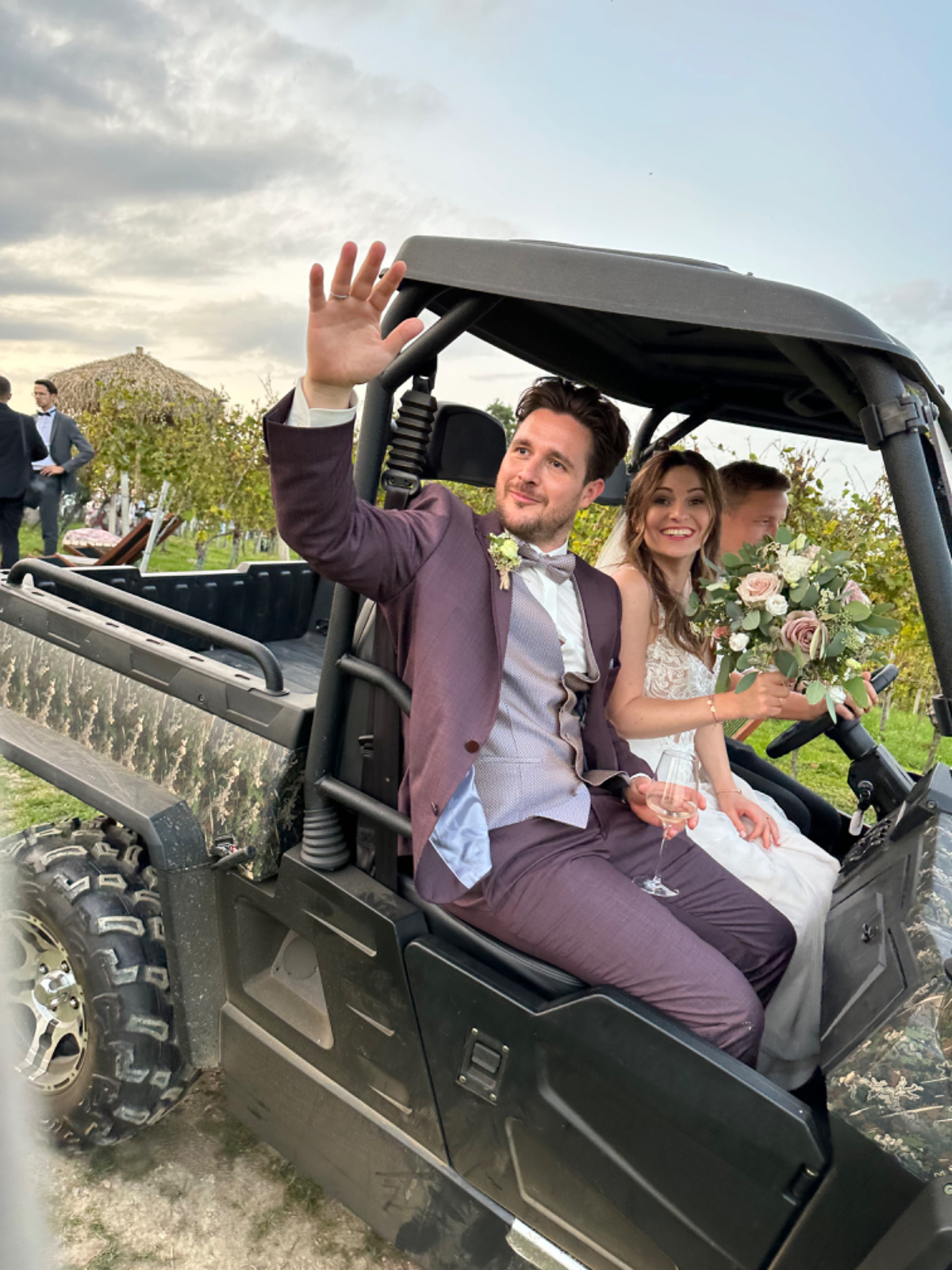 Lange vor Antritt zu meiner Tour gab es mit dem 30. September ein bestimmtes Datum, das zum damaligen Zeitpunkt mit höchster Wahrscheinlichkeit in meine Tour fallen würde. An diesem 30. September findet die Hochzeit von Rikis Neffen Sebastian statt, zu der auch ich eingeladen war, es aber kaum schaffen würde, bis dahin wieder zurück zu sein. Geht net, gibts net ;-) Schon in Bologna spielte ich mit dem Gedanken, vielleicht doch, und wenn, dann überraschend zuhause zu sein, um am Fest teilzunehmen. Ich buchte vorsorglich gleich einmal einen Flix Bus von Venedig nach Graz für den 29. September. In Venedig gibt es großzügige, gesicherte Bike Boxen zu mieten, dort kann das Rad bis zu meiner Rückkehr sicher verwahrt werden. Schon nach Tagen sah ich aber, dass ich in Venedig weitere drei Tage verlieren würde, ich wäre zu früh dort. Also Plan -und Routenänderung, auf möglichst direktem Weg nach Villach. Dort wurde ich am Freitag den 29. von meiner Schwester abgeholt, das Rad bleibt in Villach, ganz lieben Dank Eval! Am Samstag konnte ich somit als Überraschungsgast an der Hochzeitsfeier teilnehmen. Passenderweise fand die Hochzeit im Weingut Holler in der steirischen Toskana statt, bei bestem Wetter ein wahrlich stimmungsvoller Rahmen für die Trauung von Verena und Sebastian. Danke Euch beiden, dass ich dabei sein durfte, ich wünsche Euch dreien alles Glück dieser Erde für Eure gemeinsame Zukunft! :-) Mit Zustimmung von Verena und Sebastian darf ich hier ein paar Fotos veröffentlichen.