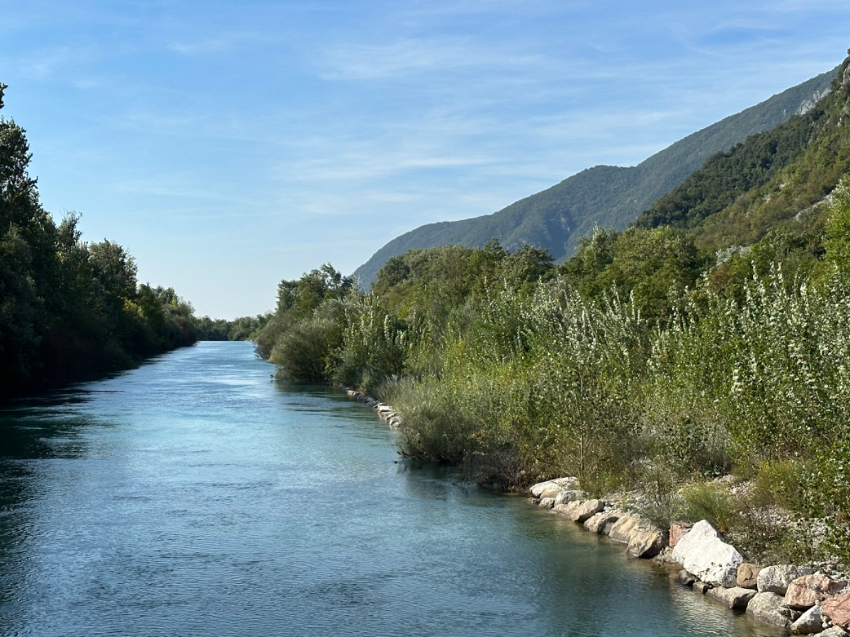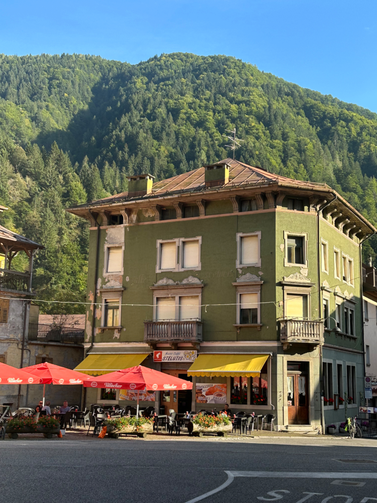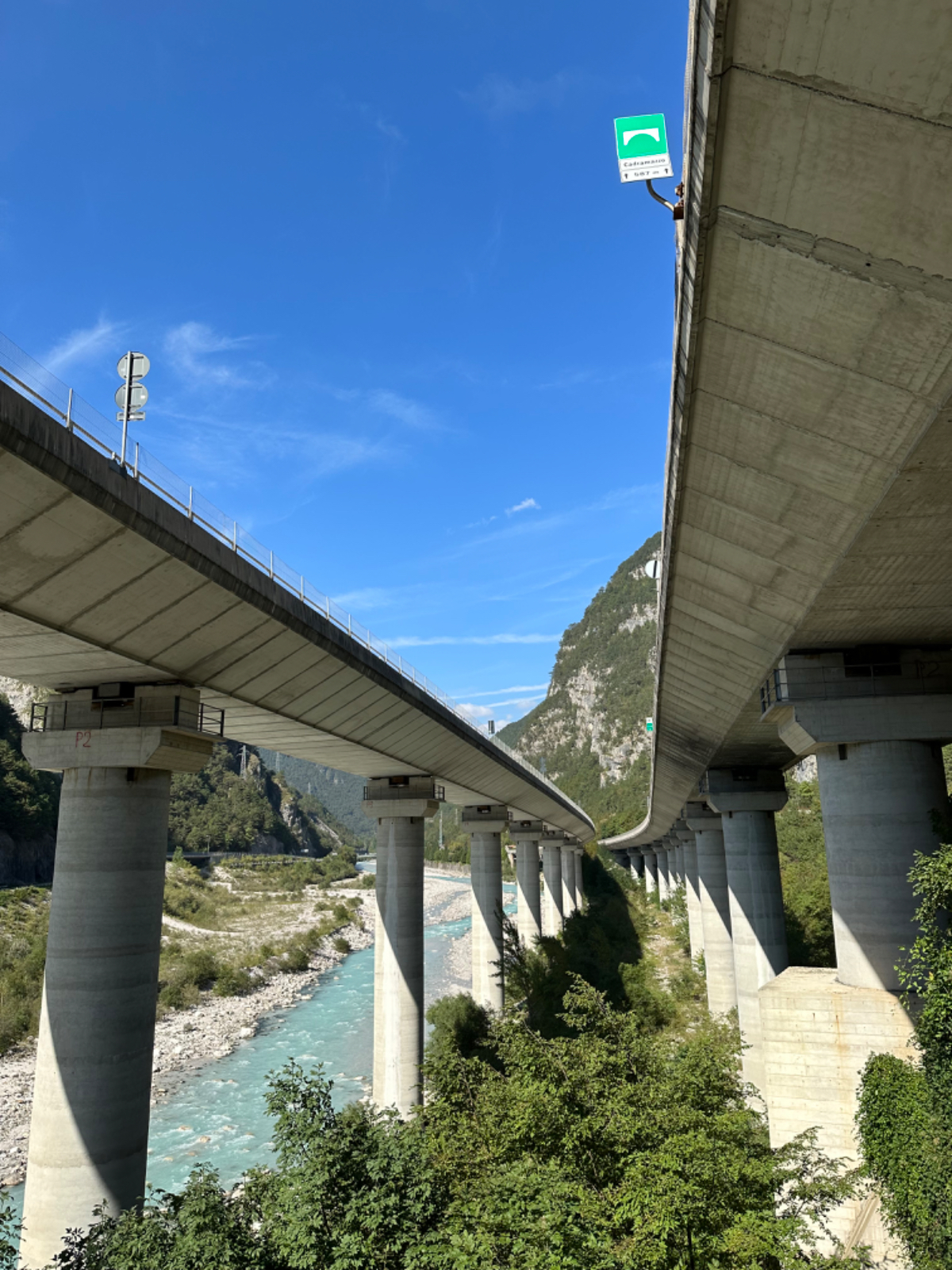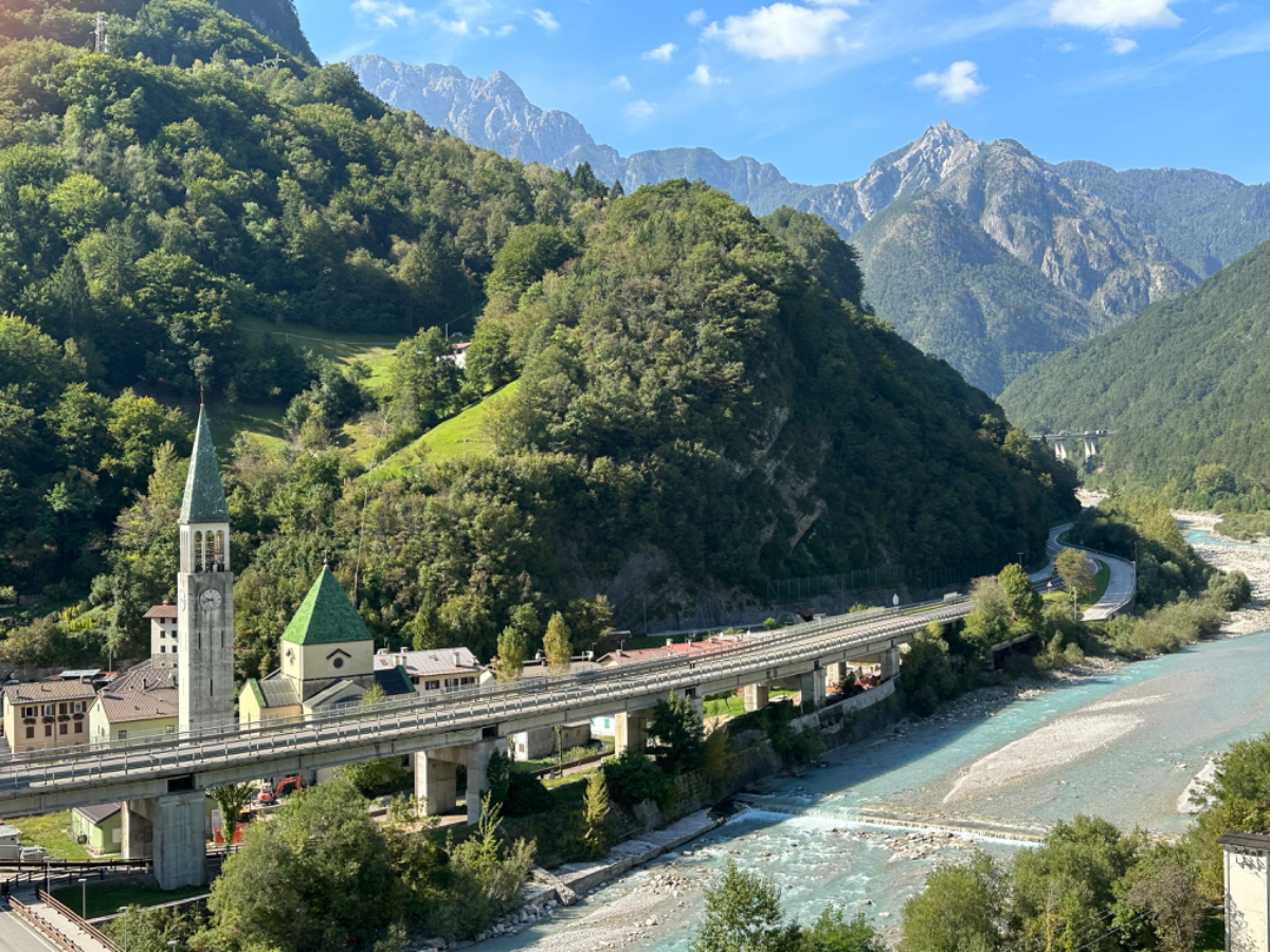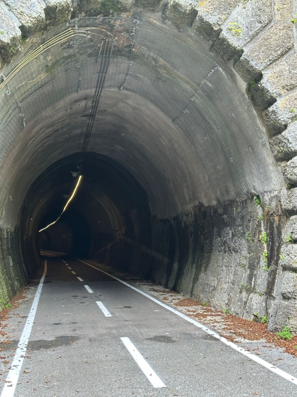 Das Hotel President in Spilimbergo ist ein weiteres auf meiner Reise, das ein großes Restaurant hat, welches aber nicht mehr geöffnet ist. Überall nur noch bed & breakfast, aber das Frühstück war sehr in Ordnung. Das Rad war im Keller sicher untergebracht, auch diesbezüglich hatte ich immer Glück. Beim Rausfahren aus Spilimbergo zeigt sich, dieser Ort ist größer als ich dachte, aber mit dem Navi keinerlei Probleme, die richtigen Wege zu finden. Kaum aus der Stadt, werde ich gleich auf einen Nebenweg geleitet. Nicht schon wieder! Wieder eine derartige Rumpelpiste, dass es kaum ein Vorankommen gibt. Endlich wieder auf der Straße, beschließe ich, nur noch dieser zu folgen, solange es Sinn macht. Ich fahre auf die Berge zu, und bin schon gleich mitten drinnen, es steigt stetig an, wie es in den Bergen so ist ;-) Die Straße ist sehr schmal und kurvenreich, aber es herrscht kaum Verkehr, es geht gut voran. Ich erreiche den Lago di Cornino, einen idyllischen kleinen Bergsee. Dann geht es lange Zeit entlang des Tagliamento auf ruhigen Straßen dahin, bis ich eine Brücke erreiche. Auf der anderen Seite liegt Venzone, mein heutiges Zwischenziel nach 40 Kilometer. Durch das Stadttor erreiche ich einen Platz, an beiden Seiten eine Bar. Ich entscheide mich für links, der Platz liegt in der Sonne. Allerdings trifft das Angebot nicht meinen Geschmack, ich wechsle die Seiten. Gute Wahl, hier gibt es frischen Apfelstrudel, dazu einen café, da ist der Schattenplatz zu vernachlässigen. Am Nebentisch sitzt ein Paar, sie sind auch mit Rädern da. Ich frage nach dem woher und wohin, und erkundige mich über ihre auffallenden Bikes. Es sind Fahrräder aus Holz, eBikes, Made in Oberösterreich, cool! Die beiden, Elisabeth und Eugen kommen aus Wien, sie sind sowohl Motorrad wie auch Rad-Biker. Es war sehr angenehm mit ihnen zu plaudern, dann bekommen sie ihr Essen, und ich muss weiter. Habt noch eine schöne Zeit! :-) Der weitere Weg führt entlang der Bundesstraße bis kurz vor Moggio Udinese, immer leicht ansteigend, anders wird es heute auch nicht mehr. Ich fahre auf den Alpe Adria Radweg, den schönsten Abschnitt vor mir, die ehemalige Bahnstrecke Pontebbana, mit ihren zahllosen Tunnels - in denen es arschkalt ist - und herrlichen Ausblicken auf das Kanaltal. Diesen Weg bin ich schon dreimal gefahren, heute erstmals in die Gegenrichtung. Wie bereits gesagt, es geht nun 30 Kilometer stetig bergan, aber sehr moderat. Der erste Tunnel, wie alle weiteren, ist gut beleuchtet, viele Lichter im Gegenverkehr, es ist noch recht viel Verkehr in Richtung Süden. Wieviel es tatsächlich ist, sehe ich bei meinem nächsten Stopp in Chiusaforte, ein Restaurant in einer ehemalige Bahnstation. Ein älterer Herr, der auch gerade hier halt macht, sagt zu mir, hier stehen Räder im Wert von mindestens 100.000 Euro, er hat Recht! So voll ist es hier. Auch auf der gegenüberliegenden Straßenseite stehen Tische, hier wird mir ein Platz zugewiesen. Am Tisch ein Schild mit der Aufschrift " Riservato Peter 13:30" Mir ist nicht bewusst dass ich reserviert hätte, aber passt doch. Ich bestelle pasta con ragu und Wasser, da kommt eine größere Gruppe von Radlern an, die Reservierung Peter. Peter ist Hotelier in Bodensdorf, er macht mit seinen Gästen eine Tagestour von Tarvisio bis Moggio Udinese, dort werden sie wieder abgeholt. Eine nette Truppe aus Deutschen und Österreichern, wir plaudern eine Weile, dann muss ich aber weiter, wir wünschen uns zum Abschied noch eine gute Reise. Nach dem Essen ist es dann doch ein bisschen mühsam, aber ich finde bald wieder meinen Rhythmus. Pontebba ist bald erreicht, an der Ortseinfahrt eine Werkstatt, Alfa Marchesan. Dio mio, da werden Erinnerungen wach! Vor dreißig Jahren! bin erstmals mit einem Alfa hierher zu Walter gefahren, eine Reparatur die in Österreich ein kleines Vermögen gekostet hätte, wurde von Walter, einem Edelschrauber, kostengünstig erledigt. Seitdem bin ich immer wieder mit diversen Autos zu Walter gefahren. Wenn man die Gesamtkosten inkl. Anfahrt berechnet, war es nicht immer nur eine Kostenentscheidung, Walter hatte einfach mein ultimatives Vertrauen. Gerne hätte ich ihn heute wiedergesehen, doch er war nicht da, er ist auch schon in Pension. Das Albergo Spina in Pontebba ist einfach aber absolut ok, ein eigener abgesperrter Radraum und liegt direkt am Radweg. Bei meiner Ankunft hatte es noch angenehme 22 Grad, ich habe am Hauptplatz in der Sonne zwei kleine Bier genossen. Rund um Pontebba sind hohe Berge, da ist die Sonne leider bald verschwunden, und es wird schnell unangenehm kalt, ich muss hinein und eine Jacke anziehen. Morgens hat es hier zehn Grad ....... Das ist heute also l'ultima notte in Italia, kaum zu glauben, und auch wenn Riki es nicht versteht, es macht mich ein wenig schwermütig. Vielleicht sollte ich morgen umkehren und in den Süden radeln, Zeit habe ich, und die nächste Pension kommt auch in den kommenden Tagen auf's Konto ;-) Realistisch ist aber, morgen habe ich in Villach gebucht, da bleibe ich zwei Tage, ich habe keine saubere Wäsche mehr, und Riki braucht dringend eine Kettenpflege. Dann noch einige Tage am Drauradweg über Maribor heim nach Graz. Ich freue mich darauf! :-))