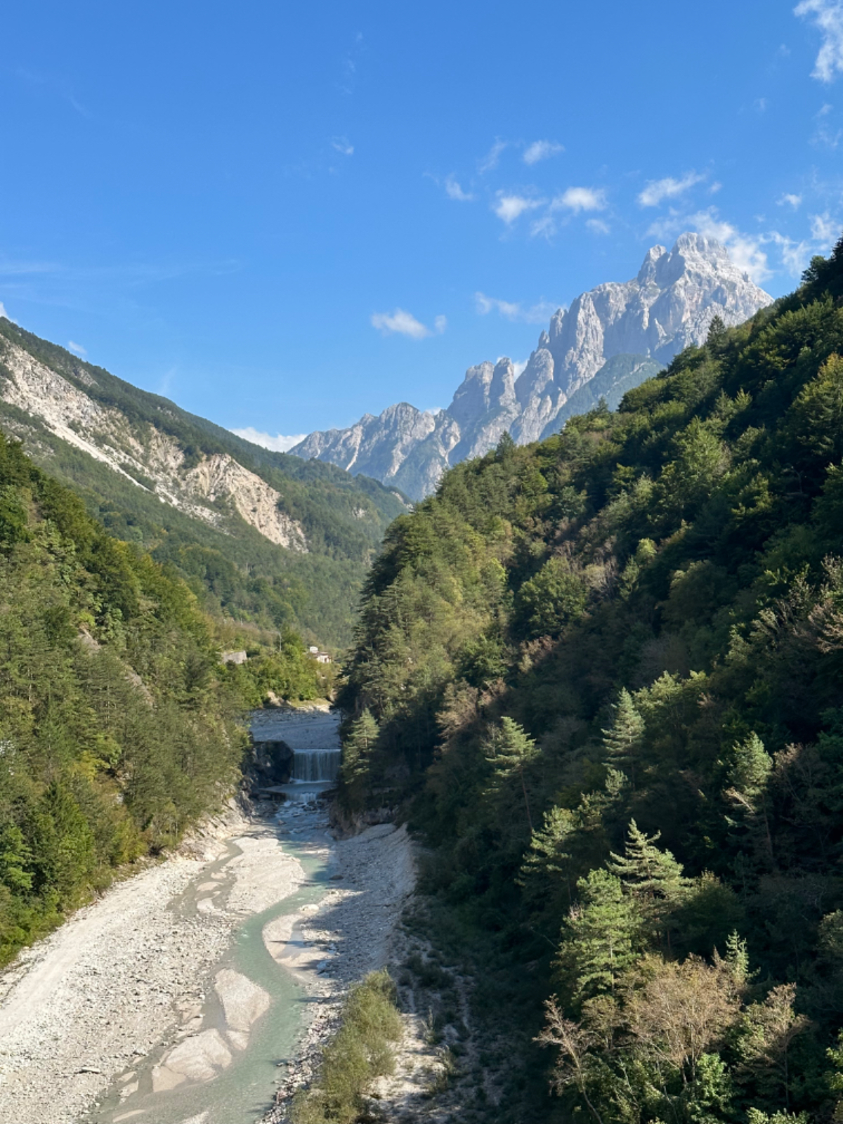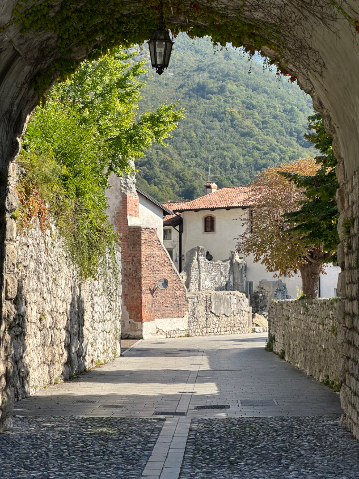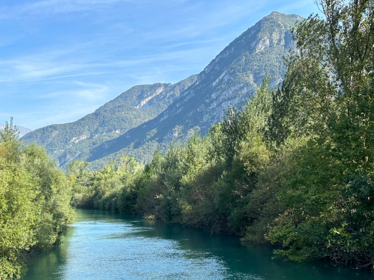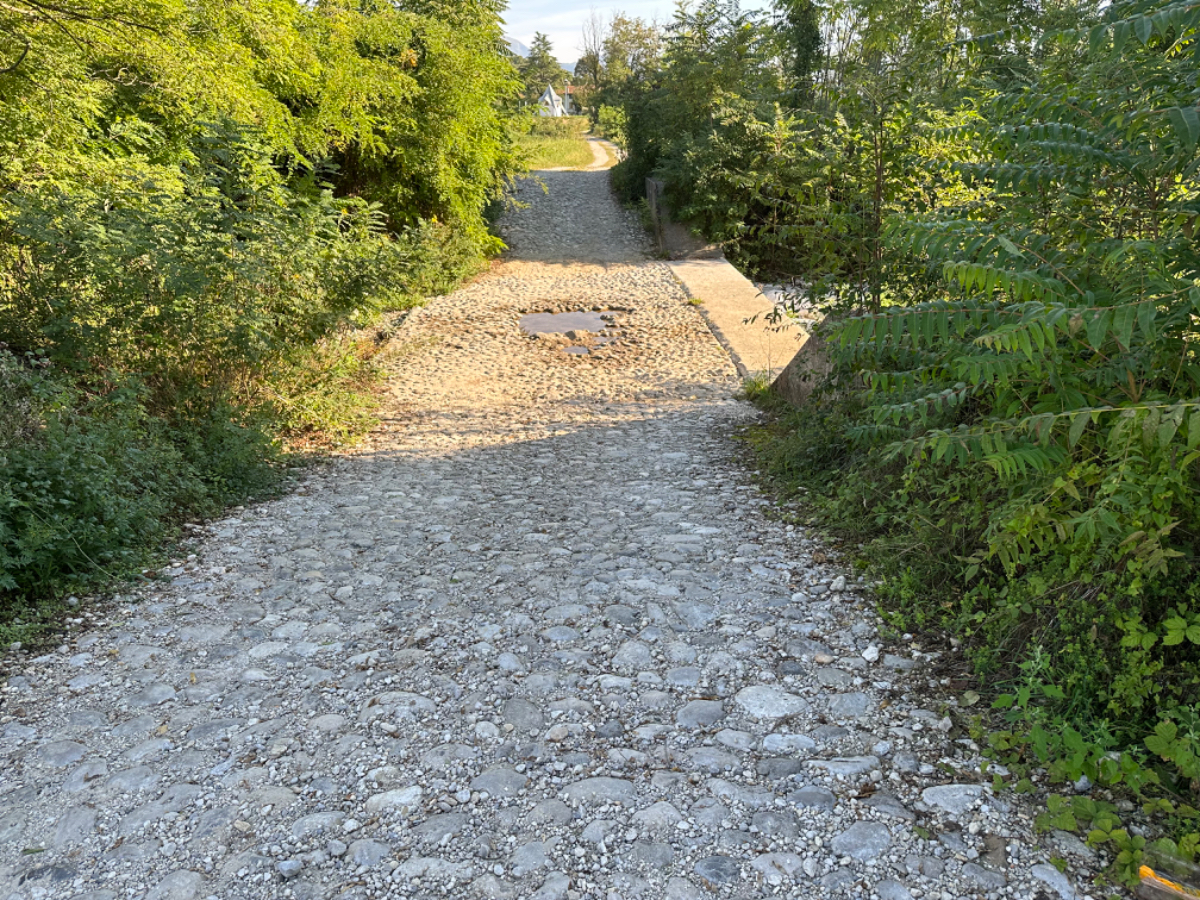 Das Hotel President in Spilimbergo ist ein weiteres auf meiner Reise, das ein großes Restaurant hat, welches aber nicht mehr geöffnet ist. Überall nur noch bed & breakfast, aber das Frühstück war sehr in Ordnung. Das Rad war im Keller sicher untergebracht, auch diesbezüglich hatte ich immer Glück. Beim Rausfahren aus Spilimbergo zeigt sich, dieser Ort ist größer als ich dachte, aber mit dem Navi keinerlei Probleme, die richtigen Wege zu finden. Kaum aus der Stadt, werde ich gleich auf einen Nebenweg geleitet. Nicht schon wieder! Wieder eine derartige Rumpelpiste, dass es kaum ein Vorankommen gibt. Endlich wieder auf der Straße, beschließe ich, nur noch dieser zu folgen, solange es Sinn macht. Ich fahre auf die Berge zu, und bin schon gleich mitten drinnen, es steigt stetig an, wie es in den Bergen so ist ;-) Die Straße ist sehr schmal und kurvenreich, aber es herrscht kaum Verkehr, es geht gut voran. Ich erreiche den Lago di Cornino, einen idyllischen kleinen Bergsee. Dann geht es lange Zeit entlang des Tagliamento auf ruhigen Straßen dahin, bis ich eine Brücke erreiche. Auf der anderen Seite liegt Venzone, mein heutiges Zwischenziel nach 40 Kilometer. Durch das Stadttor erreiche ich einen Platz, an beiden Seiten eine Bar. Ich entscheide mich für links, der Platz liegt in der Sonne. Allerdings trifft das Angebot nicht meinen Geschmack, ich wechsle die Seiten. Gute Wahl, hier gibt es frischen Apfelstrudel, dazu einen café, da ist der Schattenplatz zu vernachlässigen. Am Nebentisch sitzt ein Paar, sie sind auch mit Rädern da. Ich frage nach dem woher und wohin, und erkundige mich über ihre auffallenden Bikes. Es sind Fahrräder aus Holz, eBikes, Made in Oberösterreich, cool! Die beiden, Elisabeth und Eugen kommen aus Wien, sie sind sowohl Motorrad wie auch Rad-Biker. Es war sehr angenehm mit ihnen zu plaudern, dann bekommen sie ihr Essen, und ich muss weiter. Habt noch eine schöne Zeit! :-) Der weitere Weg führt entlang der Bundesstraße bis kurz vor Moggio Udinese, immer leicht ansteigend, anders wird es heute auch nicht mehr. Ich fahre auf den Alpe Adria Radweg, den schönsten Abschnitt vor mir, die ehemalige Bahnstrecke Pontebbana, mit ihren zahllosen Tunnels - in denen es arschkalt ist - und herrlichen Ausblicken auf das Kanaltal. Diesen Weg bin ich schon dreimal gefahren, heute erstmals in die Gegenrichtung. Wie bereits gesagt, es geht nun 30 Kilometer stetig bergan, aber sehr moderat. Der erste Tunnel, wie alle weiteren, ist gut beleuchtet, viele Lichter im Gegenverkehr, es ist noch recht viel Verkehr in Richtung Süden. Wieviel es tatsächlich ist, sehe ich bei meinem nächsten Stopp in Chiusaforte, ein Restaurant in einer ehemalige Bahnstation. Ein älterer Herr, der auch gerade hier halt macht, sagt zu mir, hier stehen Räder im Wert von mindestens 100.000 Euro, er hat Recht! So voll ist es hier. Auch auf der gegenüberliegenden Straßenseite stehen Tische, hier wird mir ein Platz zugewiesen. Am Tisch ein Schild mit der Aufschrift " Riservato Peter 13:30" Mir ist nicht bewusst dass ich reserviert hätte, aber passt doch. Ich bestelle pasta con ragu und Wasser, da kommt eine größere Gruppe von Radlern an, die Reservierung Peter. Peter ist Hotelier in Bodensdorf, er macht mit seinen Gästen eine Tagestour von Tarvisio bis Moggio Udinese, dort werden sie wieder abgeholt. Eine nette Truppe aus Deutschen und Österreichern, wir plaudern eine Weile, dann muss ich aber weiter, wir wünschen uns zum Abschied noch eine gute Reise. Nach dem Essen ist es dann doch ein bisschen mühsam, aber ich finde bald wieder meinen Rhythmus. Pontebba ist bald erreicht, an der Ortseinfahrt eine Werkstatt, Alfa Marchesan. Dio mio, da werden Erinnerungen wach! Vor dreißig Jahren! bin erstmals mit einem Alfa hierher zu Walter gefahren, eine Reparatur die in Österreich ein kleines Vermögen gekostet hätte, wurde von Walter, einem Edelschrauber, kostengünstig erledigt. Seitdem bin ich immer wieder mit diversen Autos zu Walter gefahren. Wenn man die Gesamtkosten inkl. Anfahrt berechnet, war es nicht immer nur eine Kostenentscheidung, Walter hatte einfach mein ultimatives Vertrauen. Gerne hätte ich ihn heute wiedergesehen, doch er war nicht da, er ist auch schon in Pension. Das Albergo Spina in Pontebba ist einfach aber absolut ok, ein eigener abgesperrter Radraum und liegt direkt am Radweg. Bei meiner Ankunft hatte es noch angenehme 22 Grad, ich habe am Hauptplatz in der Sonne zwei kleine Bier genossen. Rund um Pontebba sind hohe Berge, da ist die Sonne leider bald verschwunden, und es wird schnell unangenehm kalt, ich muss hinein und eine Jacke anziehen. Morgens hat es hier zehn Grad ....... Das ist heute also l'ultima notte in Italia, kaum zu glauben, und auch wenn Riki es nicht versteht, es macht mich ein wenig schwermütig. Vielleicht sollte ich morgen umkehren und in den Süden radeln, Zeit habe ich, und die nächste Pension kommt auch in den kommenden Tagen auf's Konto ;-) Realistisch ist aber, morgen habe ich in Villach gebucht, da bleibe ich zwei Tage, ich habe keine saubere Wäsche mehr, und Riki braucht dringend eine Kettenpflege. Dann noch einige Tage am Drauradweg über Maribor heim nach Graz. Ich freue mich darauf! :-))
