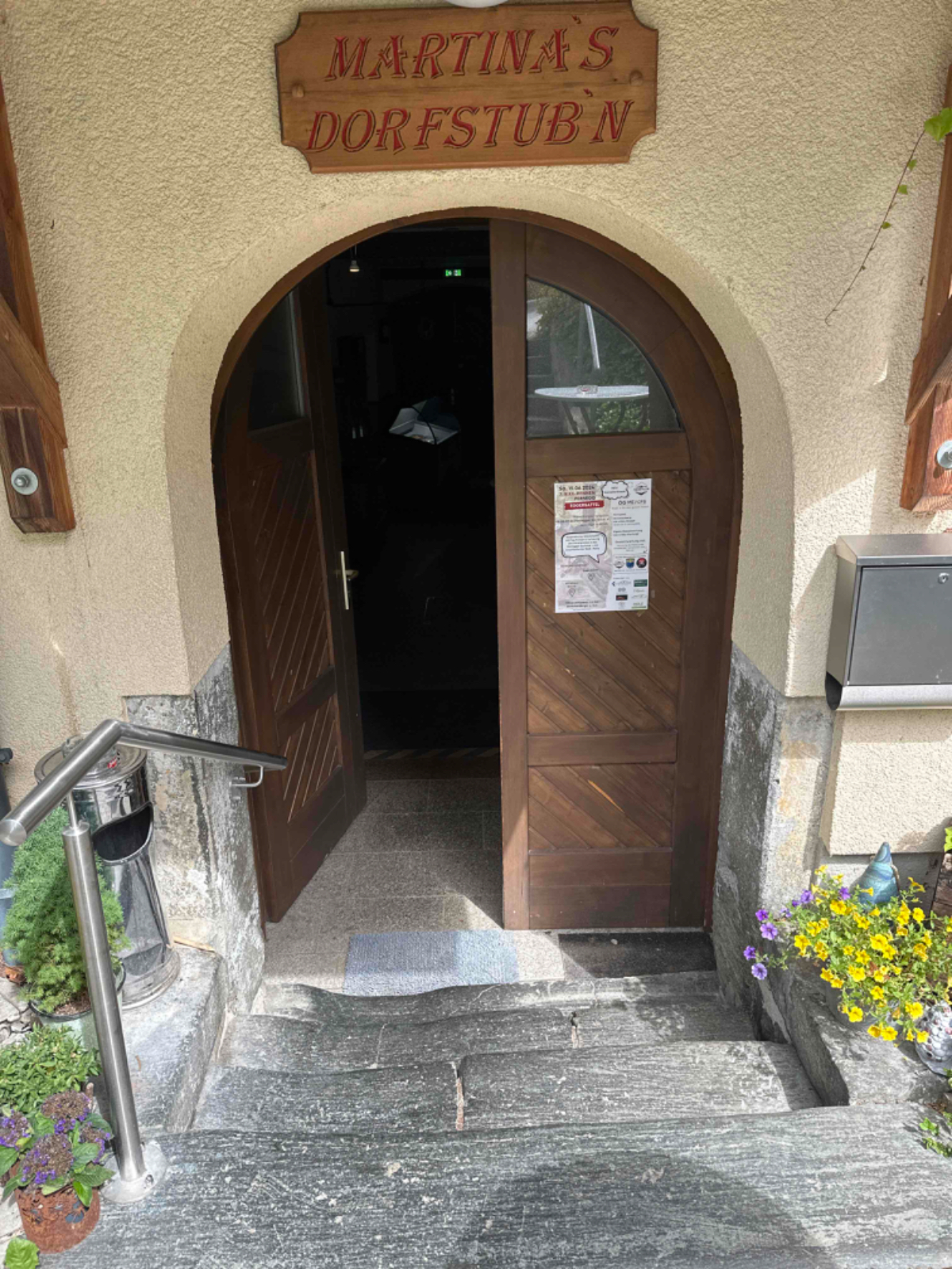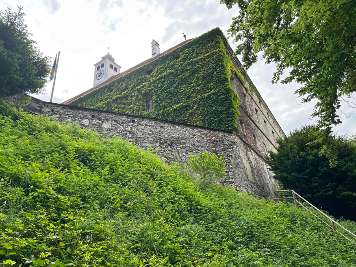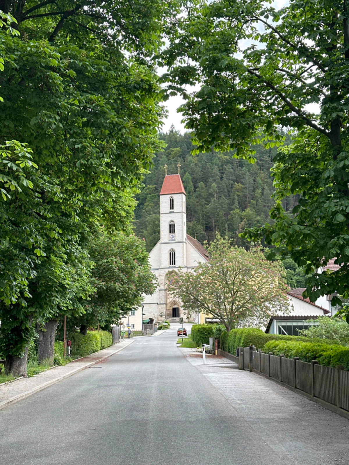 Die letzten 70km sind auch eher von der wenig beschwerlichen Art, einige wenige Steigungen, sonst eher flach dahin, gemütliches homecoming, wenn das Wetter hält. Nach Bruck geht es meist entlang der Bahnstrecke dahin, mal rauf, dann wieder runter, und schon bald ist Pernegg erreicht. Aus der Ferne sehe ich über der altbekannten Marienkirche versteckt im Wald ein Gebäude, es könnte ein Kloster sein denke ich mir. Um es herauszufinden fahre ich hinter der Kirche einen steilen Gehweg hinauf, und stehe vor den Toren von Schloß Pernegg, welches in Privatbesitz ist. Sieht sehr gepflegt aus, ein Zutritt ist nicht möglich. Wieder unten bei der Kirche statte ich dieser einen Besuch ab und entzünde eine Dankeskerze für die so gut verlaufene Reise, nicht weil ich so gläubig bin, sondern ganz einfach weil ich dankbar bin. Vor der Kirche befindet sich die Dorfstub´n Pernegg von Martina Ziesler. Hier war meine erste Einkehr bei der Hinfahrt und hier kehre ich auch heute ein. Letztes mal bei Sonnenschein im Gastgarten, heute drinnen in der gemütlichen Stube. Martina kann sich an meinen ersten Besuch erinnern und wir kommen ins Gespräch, eine sehr schöne und interessante Unterhaltung, wir haben einige Übereinstimmung die Reisen zu Fuß bzw. per Rad betreffend. Ich wäre gerne länger geblieben, aber wer weiß, vielleicht passt es ja wieder einmal. Vielen Dank Martina für die Einladung :-)