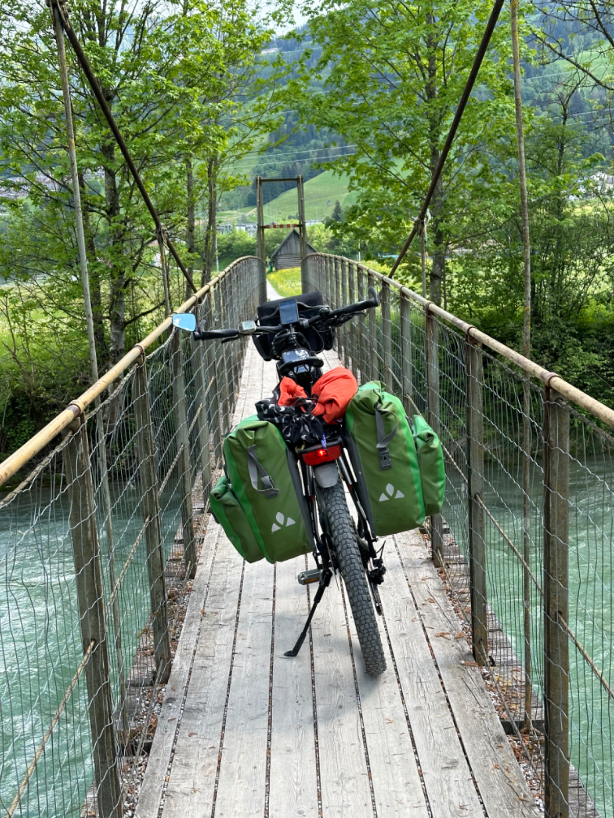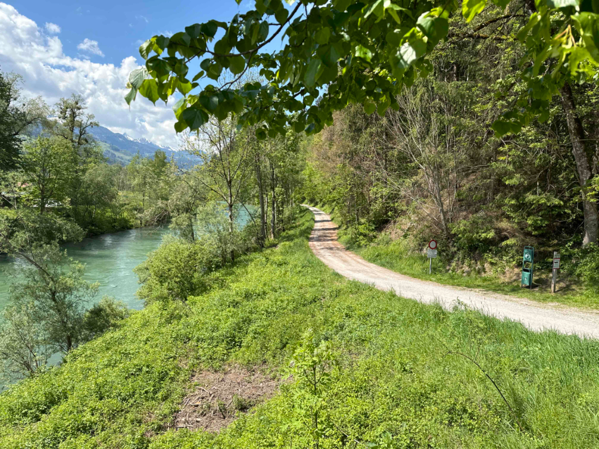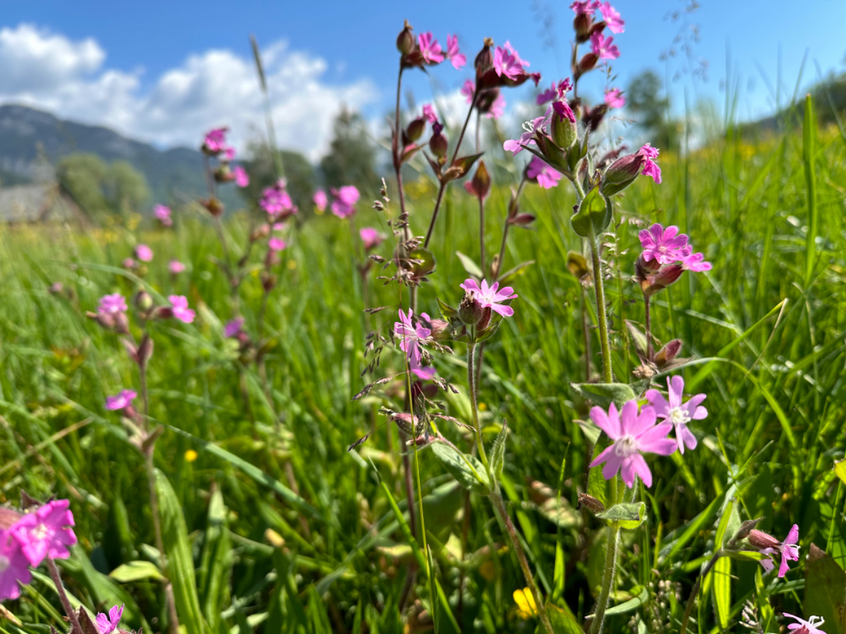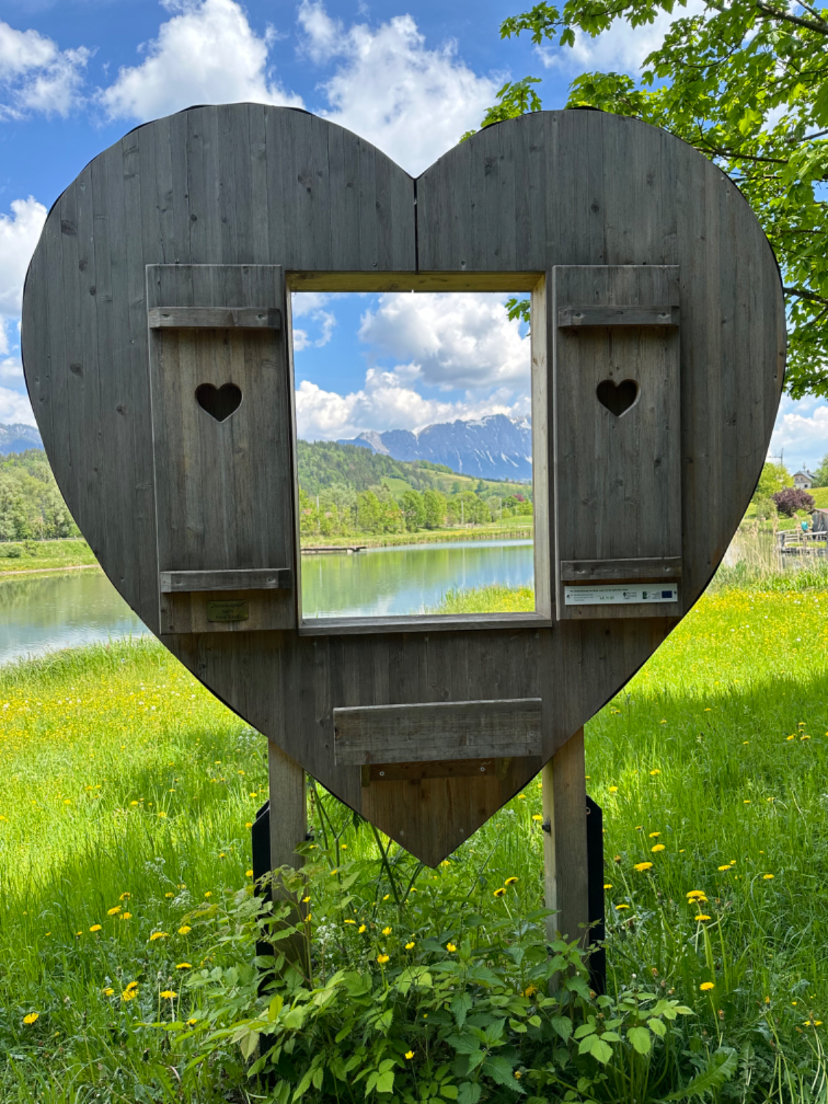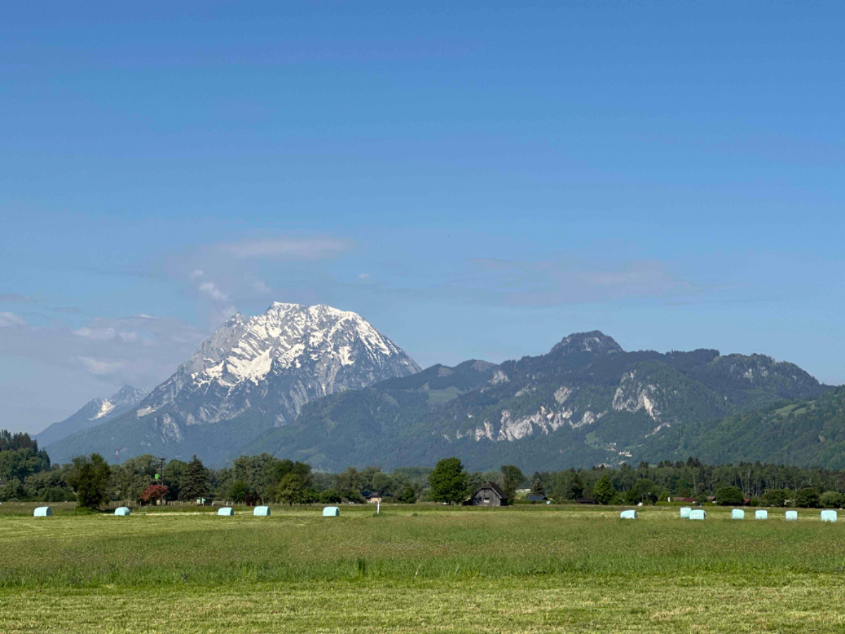 Auf einer Blumenwiese mache ich Fotos und versende Muttertagsgrüße an Großmütter, Mütter und Töchter, für mich schlummert in jeder Frau eine Mutter :-) In Weissenbach mache ich eine Pause, ein Café liegt da so einladend am Wegesrand, und ich habe es nicht bereut. Topfenstrudel mit Vanillesauce, dazu grüner Tee, danach sind die Energiespeicher wieder voll für die restliche Strecke bis Schladming. Kurz vor Schladming kommt mir ein cooler Typ auf einem Hochrad entgegen. Nach kurzer Überlegung kehre ich um. Um ihn einzuholen, muss ich ganz schön in die Pedale treten.