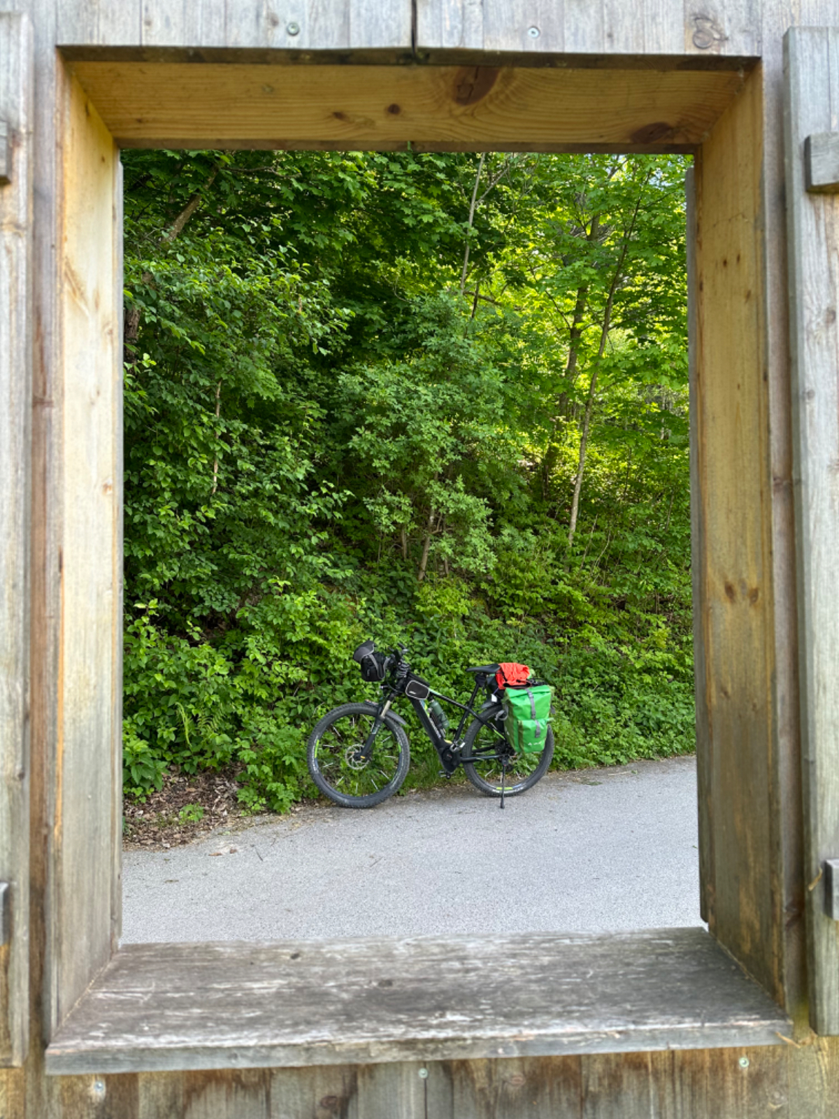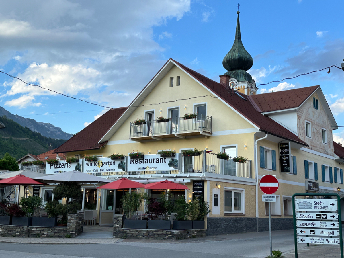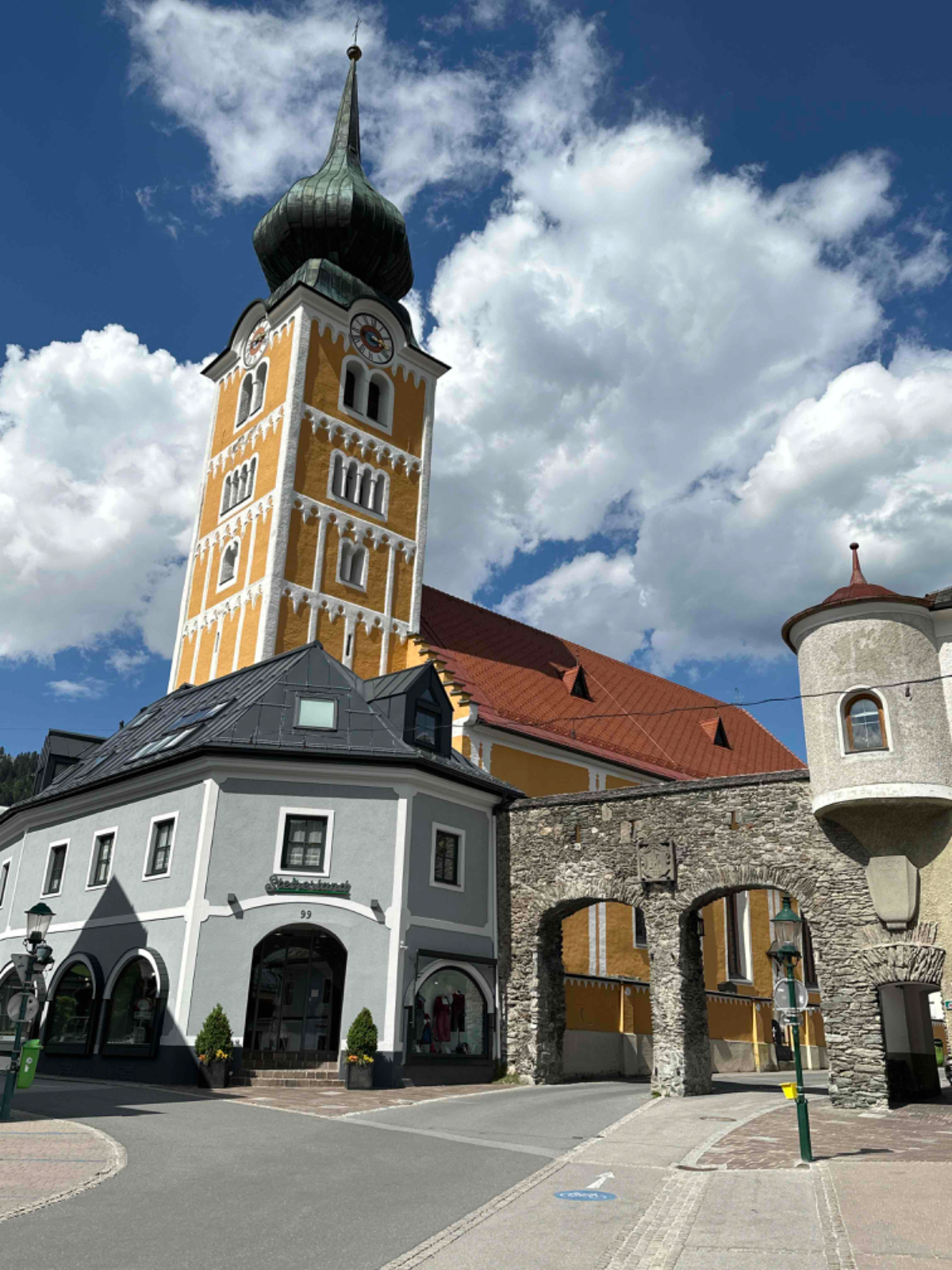 Franz Seggl, 71!! ein Urgestein aus Schladming, radelte bereits mehrere tausend Kilometer mit dem Hochrad, z.b. umrundet er mehrmals am Tag den Dachstein, oder er geht morgens mit den Tourenschi in die Berge, um am Nachmittag seine Runden mit dem Hochrad zu drehen. Auf YouTube gibt es einige Berichte über ihn. Nach einigen Fotos verabschieden wir uns, allerdings sehe ich ihn später in Schladming nochmals wieder. Als erstes fahre ich zur Planai Talstation, sehr imposant, auch ohne Schnee. Insgesamt ist in Schladming wenig los, einige Radfahrer und Biker sind in der Stadt. Kaum vorstellbar, was hier in den Hauptsaisonen los sein wird.