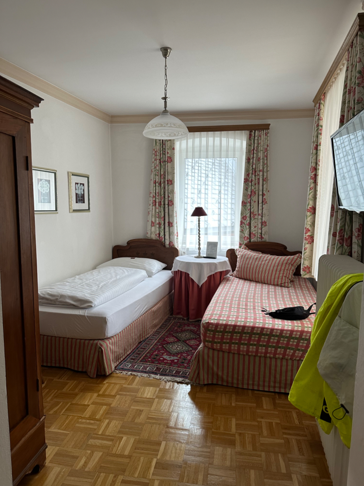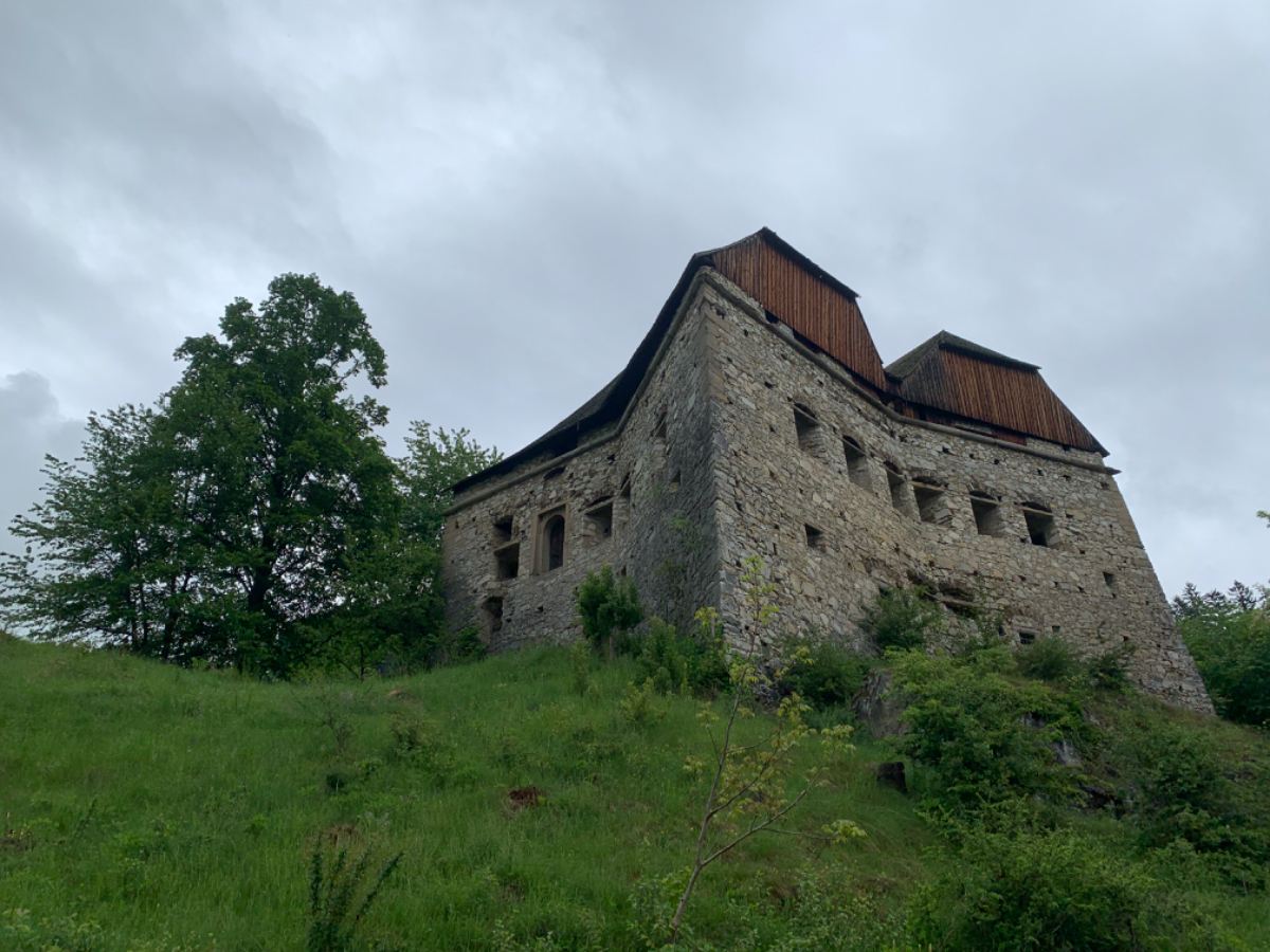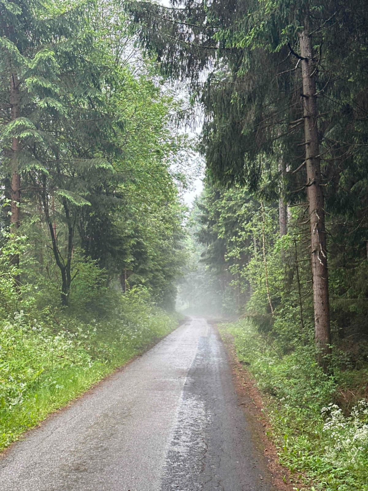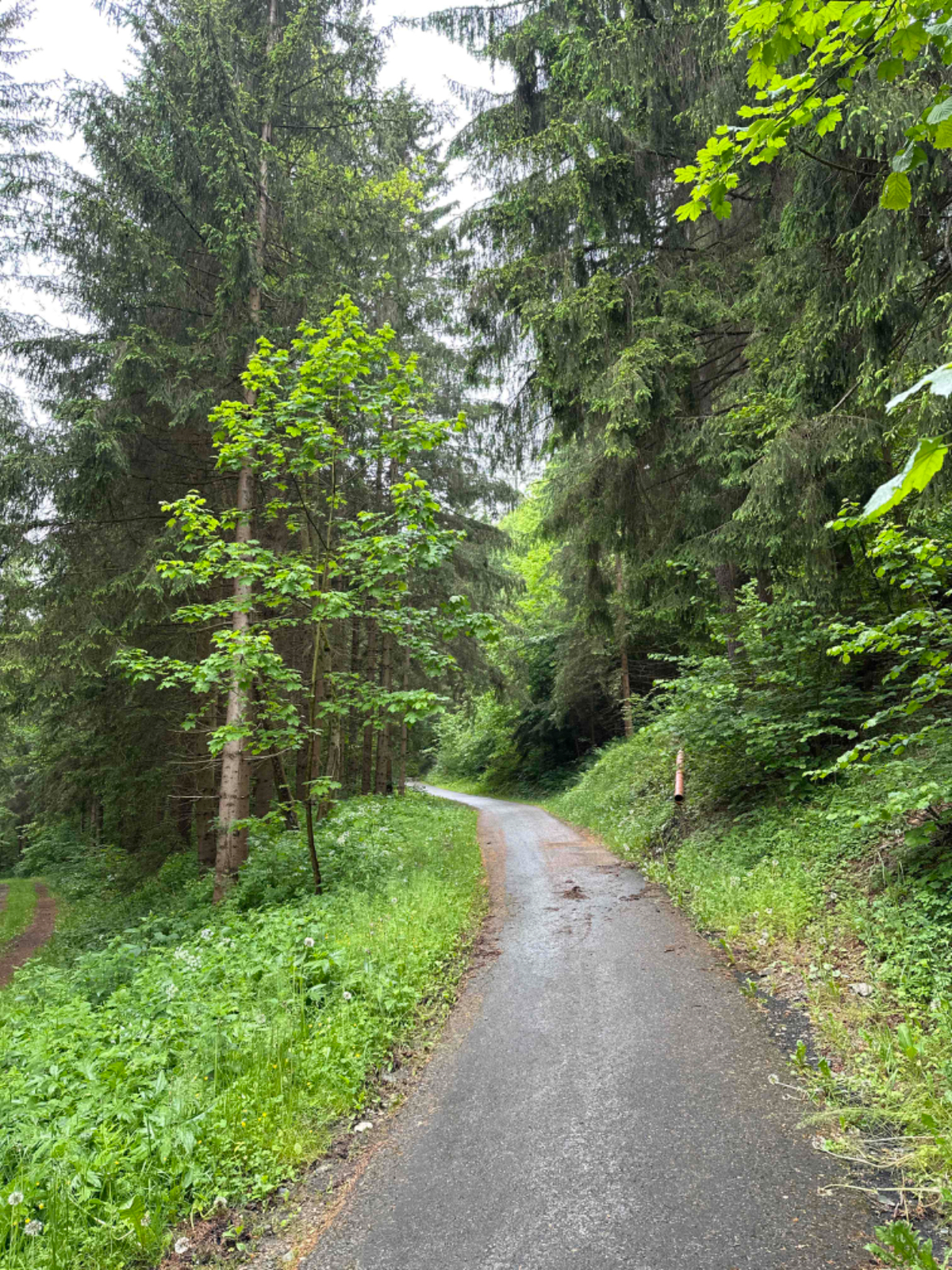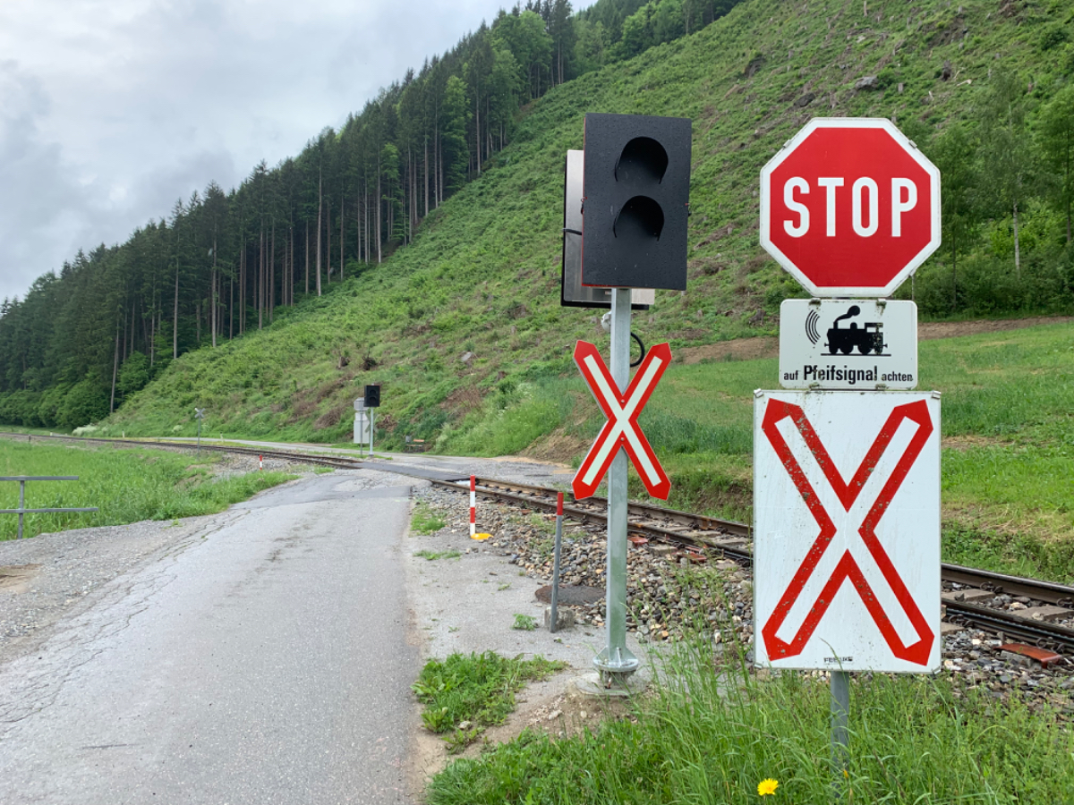 Jedenfalls hatten wir damals besseres Wetter, heute Regen ohne Ende, zumeist aber nicht stark. Das betrachte ich auch heute wieder als Wetterglück, denn wenn ich jetzt aus dem Fenster schaue, schüttet es gerade ziemlich. Auf meinem Weg kreuzte ich mehrmals den Schienenstrang der Schmalspurbahn, Zug habe ich den ganzen Tag aber keinen gesehen, genausowenig ist mir heute auch nur ein einziger Radfahrer begegnet, die Schönwetterfahrer sind heute zuhause geblieben. Nach knapp 90 km bin ich kurz vor 14 Uhr in Weißkirchen angekommen, nass und dreckig, froh dass für heute Schluß ist.