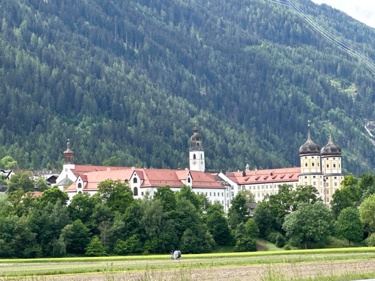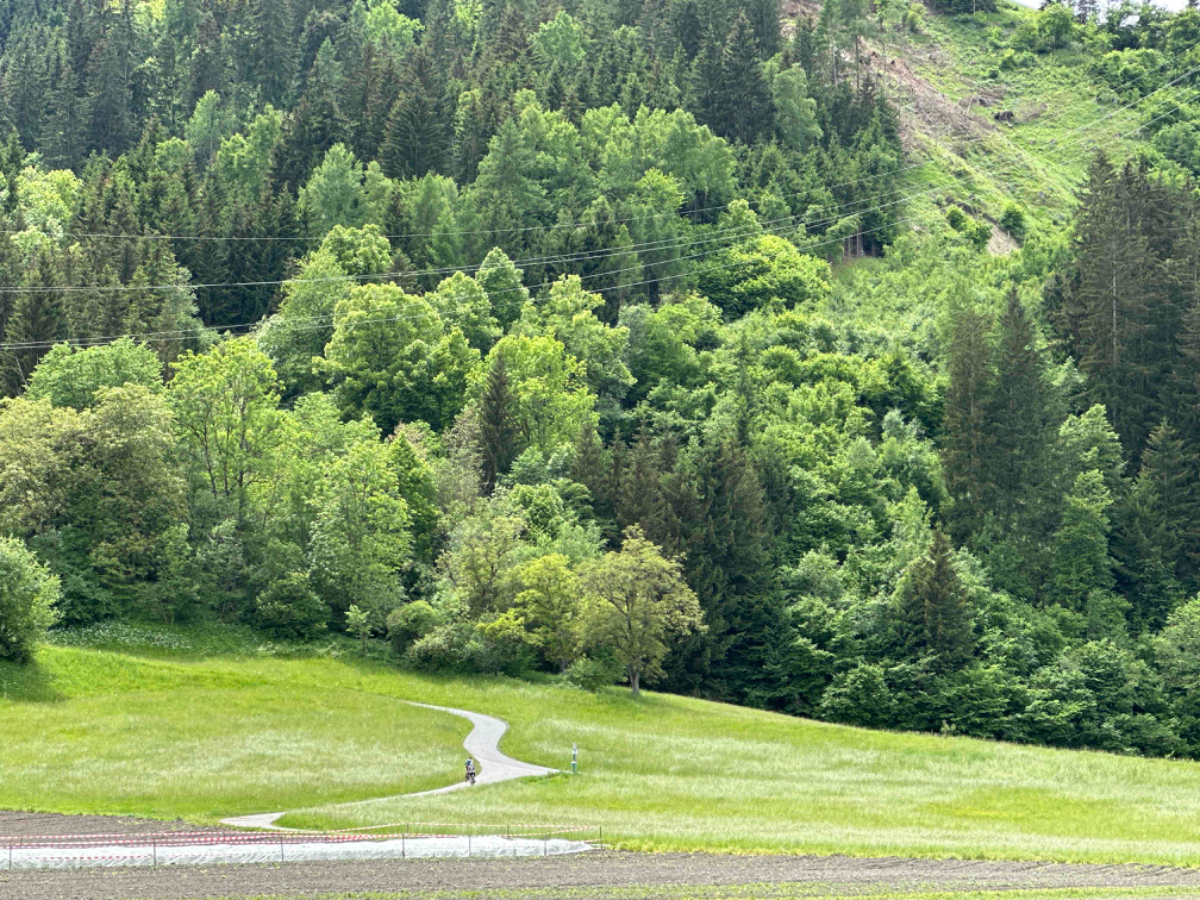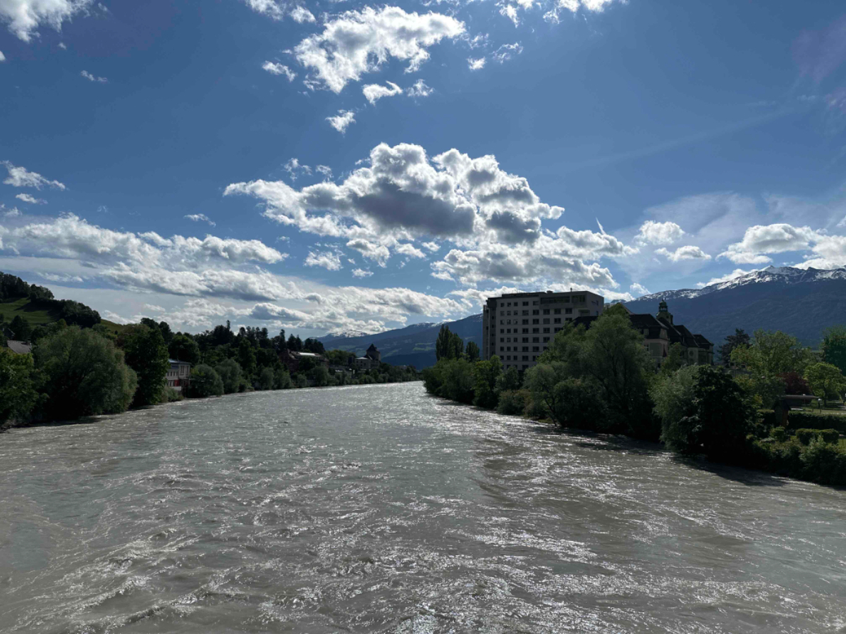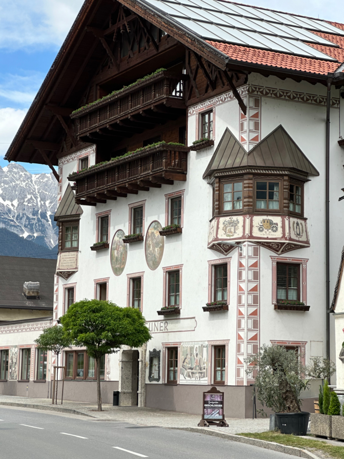 Schon Tag sieben, heute bin ich eine Woche unterwegs. Dieses tägliche Blogschreiben lässt mich den Tag nochmals revue passieren, ohne dieses tägliche Schreiben würde vieles gleich wieder in der ewigen Vergessenheit versinken, ich kann mich doch schon heute nicht mehr erinnern, wo genau ich vorgestern war, aber ich kann’s ja nachlesen ;-) Der Wetterbericht für heute hat gestern am Abend nichts Gutes verlauten lassen, umso überraschter war ich heute früh, dass es leidlich schön zu sein schien, als ich den Vorhang zurück zog. Das Frühstück wurde dem Rest des Hauses durchaus gerecht, es war alles da. Mancher würde vielleicht sagen, besser geht immer, aber es wäre die pure Verschwendung gewesen. Mein Rad trage ich die enge Treppe wieder hinunter, fürs Gepäck nehme ich den Lift. Um neun radle ich aus Wattens hinaus, es ist wolkig, aber mit Sonnenfenstern in meine Fahrtrichtung. Es liegen wieder über 80km vor mir, sollte aber kein Problem sein, laut Höhenprofil geht es die ersten 50km nur ganz moderat bergauf, dem Gefälle des Inn gegen die Flußrichtung folgend. So ist es dann auch, ich radle heute wirklich ganz gemütlich dahin, brauche kaum Unterstützung und es macht Spaß. Bald ist Innsbruck erreicht, über eine breite Promenade zwischen Inn und Bundesstraße radle ich in die Stadt hinein. Es ist zu früh für eine längere Pause und wer weiß wie sich das Wetter entwickelt, also beschließe ich, nach einigen Fotos bald weiter zu fahren. Der Innradweg führt wie der Name vermuten lässt, meist entlang des Inn dahin, Fast immer auf Radwegen, aber manchmal auch weg vom Wasser durch die Dörfer. Die Beschilderung des Radweges ist wirklich vorbildlich gemacht, habe ich anderswo schon ganz anders erlebt. Heute gibt es wieder mal eine Baustelle mit einer größeren Umleitung. Zuerst gibts auch wieder eine Beschilderung der Umleitungsstrecke, aber irgendwann ists dann vorbei damit, und ich folge mehr meiner Intuition. Ich befinde mich in der weiten Ebene des Inntals, verfahren kann ich mich eh nicht, das Tal ist ja links und rechts mit hohen Bergen begrenzt ;-) Das Inntal ist einziger großer Gemüsegarten, Feld an Feld, dazwischen Folientunnel, und überall läuft die Bewässerung auf Hochtouren, die Erde ist staubtrocken. Aber in den kommenden Tagen wird es sicher Regen geben, nur für mich hoffentlich heute noch nicht. Nach einigen km erreiche ich meine Route wieder und folge dem Navi. Seit ich in Tirol bin, liegt ein schwerer „Duft“ in der Luft, es riecht ständig nach Stall, aber auch kein Wunder, hier wird kräftigst gedüngt, teilweise steht die Gülle auf den Feldern. Bisher ist es der anspruchsloseste aber auch unspektakulärste Abschnitt der Gsiberg-Tour, aber es wird noch. An den letzten 20 km geht es doch wieder zum Teil schön zackig hinauf, aber in einer wunderschönen Umgebung, nach Roppen fahre ich durch einen Kiefernwald hinauf, hinunter, rauf und runter, und komme dann in ein enges Tal, das nur Platz für die Bahngleise, den Fluß und den Radweg lässt, mit Blick auf vor mir in der Ferne aufragende Berge. Am Ende erreiche ich Imst, mein heutiges Ziel. Um 15 Uhr checke ich ein, ein wunderschöner alter Gasthof / Hotel, ich habe das Chefzimmer bekommen, alles gut, auch das Bier und die Küche.