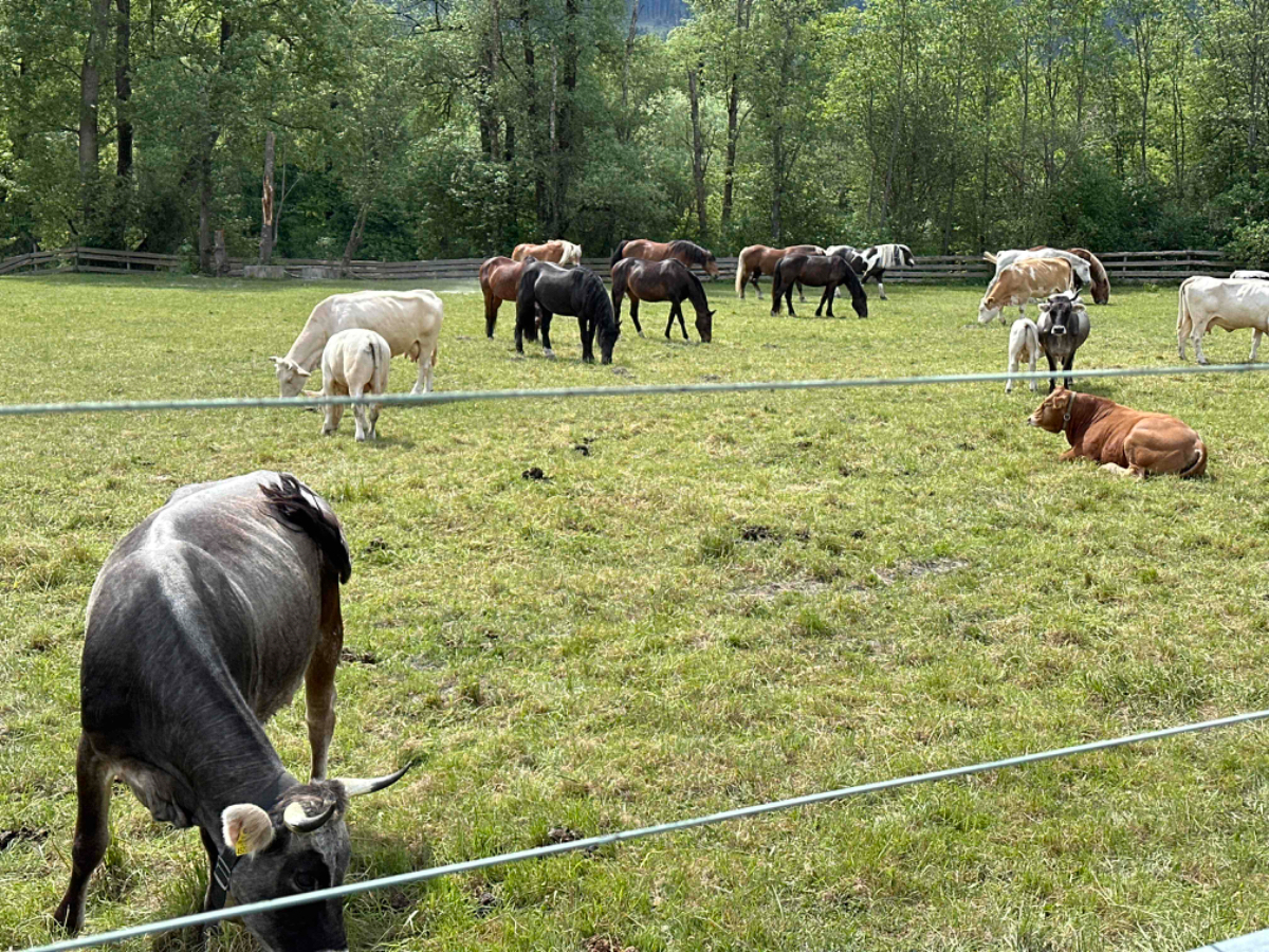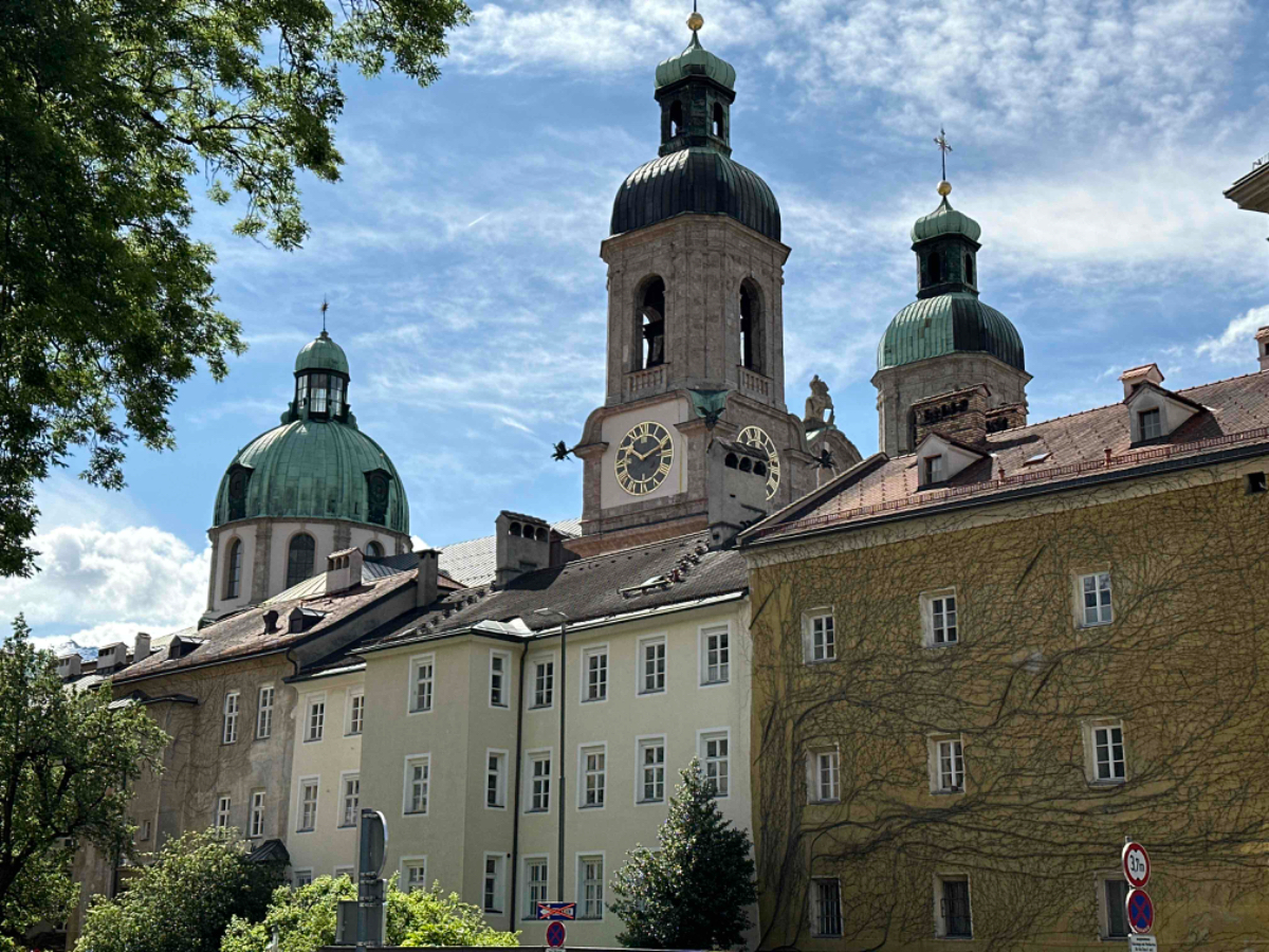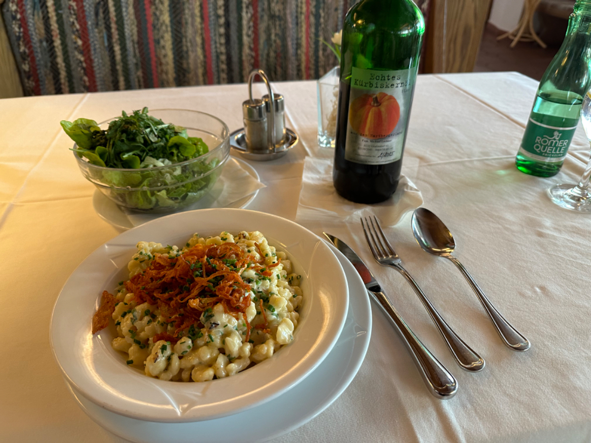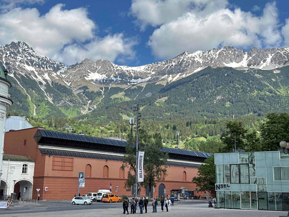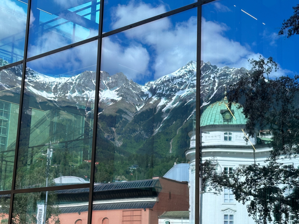 Schon Tag sieben, heute bin ich eine Woche unterwegs. Dieses tägliche Blogschreiben lässt mich den Tag nochmals revue passieren, ohne dieses tägliche Schreiben würde vieles gleich wieder in der ewigen Vergessenheit versinken, ich kann mich doch schon heute nicht mehr erinnern, wo genau ich vorgestern war, aber ich kann’s ja nachlesen ;-) Der Wetterbericht für heute hat gestern am Abend nichts Gutes verlauten lassen, umso überraschter war ich heute früh, dass es leidlich schön zu sein schien, als ich den Vorhang zurück zog. Das Frühstück wurde dem Rest des Hauses durchaus gerecht, es war alles da. Mancher würde vielleicht sagen, besser geht immer, aber es wäre die pure Verschwendung gewesen. Mein Rad trage ich die enge Treppe wieder hinunter, fürs Gepäck nehme ich den Lift. Um neun radle ich aus Wattens hinaus, es ist wolkig, aber mit Sonnenfenstern in meine Fahrtrichtung. Es liegen wieder über 80km vor mir, sollte aber kein Problem sein, laut Höhenprofil geht es die ersten 50km nur ganz moderat bergauf, dem Gefälle des Inn gegen die Flußrichtung folgend. So ist es dann auch, ich radle heute wirklich ganz gemütlich dahin, brauche kaum Unterstützung und es macht Spaß. Bald ist Innsbruck erreicht, über eine breite Promenade zwischen Inn und Bundesstraße radle ich in die Stadt hinein. Es ist zu früh für eine längere Pause und wer weiß wie sich das Wetter entwickelt, also beschließe ich, nach einigen Fotos bald weiter zu fahren. Der Innradweg führt wie der Name vermuten lässt, meist entlang des Inn dahin, Fast immer auf Radwegen, aber manchmal auch weg vom Wasser durch die Dörfer. Die Beschilderung des Radweges ist wirklich vorbildlich gemacht, habe ich anderswo schon ganz anders erlebt. Heute gibt es wieder mal eine Baustelle mit einer größeren Umleitung. Zuerst gibts auch wieder eine Beschilderung der Umleitungsstrecke, aber irgendwann ists dann vorbei damit, und ich folge mehr meiner Intuition. Ich befinde mich in der weiten Ebene des Inntals, verfahren kann ich mich eh nicht, das Tal ist ja links und rechts mit hohen Bergen begrenzt ;-) Das Inntal ist einziger großer Gemüsegarten, Feld an Feld, dazwischen Folientunnel, und überall läuft die Bewässerung auf Hochtouren, die Erde ist staubtrocken. Aber in den kommenden Tagen wird es sicher Regen geben, nur für mich hoffentlich heute noch nicht. Nach einigen km erreiche ich meine Route wieder und folge dem Navi. Seit ich in Tirol bin, liegt ein schwerer „Duft“ in der Luft, es riecht ständig nach Stall, aber auch kein Wunder, hier wird kräftigst gedüngt, teilweise steht die Gülle auf den Feldern. Bisher ist es der anspruchsloseste aber auch unspektakulärste Abschnitt der Gsiberg-Tour, aber es wird noch. An den letzten 20 km geht es doch wieder zum Teil schön zackig hinauf, aber in einer wunderschönen Umgebung, nach Roppen fahre ich durch einen Kiefernwald hinauf, hinunter, rauf und runter, und komme dann in ein enges Tal, das nur Platz für die Bahngleise, den Fluß und den Radweg lässt, mit Blick auf vor mir in der Ferne aufragende Berge. Am Ende erreiche ich Imst, mein heutiges Ziel. Um 15 Uhr checke ich ein, ein wunderschöner alter Gasthof / Hotel, ich habe das Chefzimmer bekommen, alles gut, auch das Bier und die Küche.