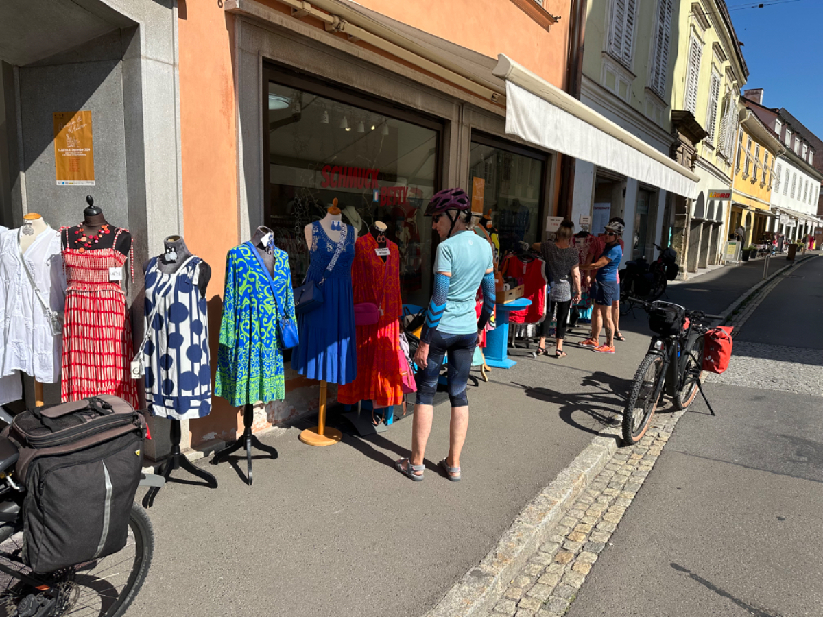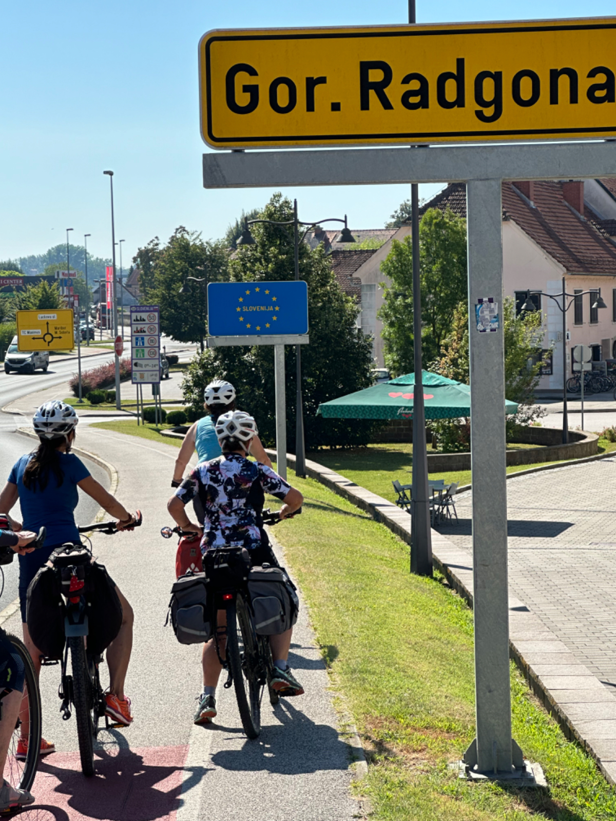 Nach einem üppigen Frühstück verlassen wir Altneudörfl und cruisen durch Radkersburg, ohne uns dort allzulange aufzuhalten, der Hauptplatz ist eine Baustelle und wenig einladend. Einmal über eine Murbrücke gefahren und schon sind wir in Gorna Radgona in Slowenien angekommen. Wir wollten zur Burg hinauf fahren, aber trotz Riki’s Spürsinn haben wir den rechten Weg nicht gefunden ;-)