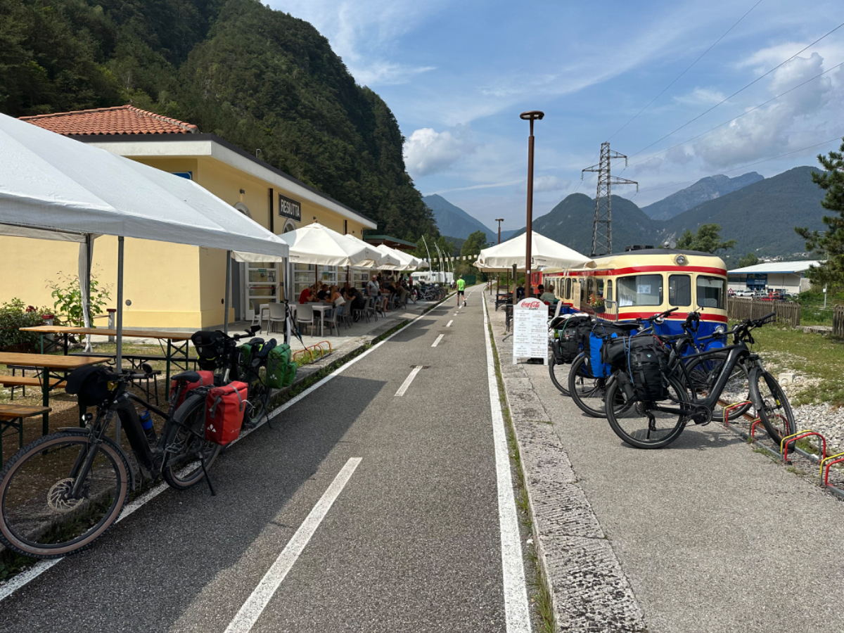 geht es die Pontebana hinauf bis zum Bahnhof Chiusa Forte. Es ist Mittagszeit, dementsprechend ist