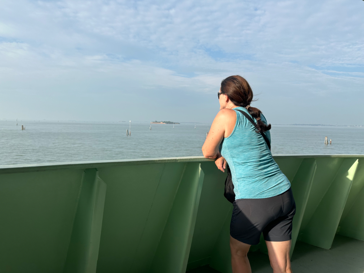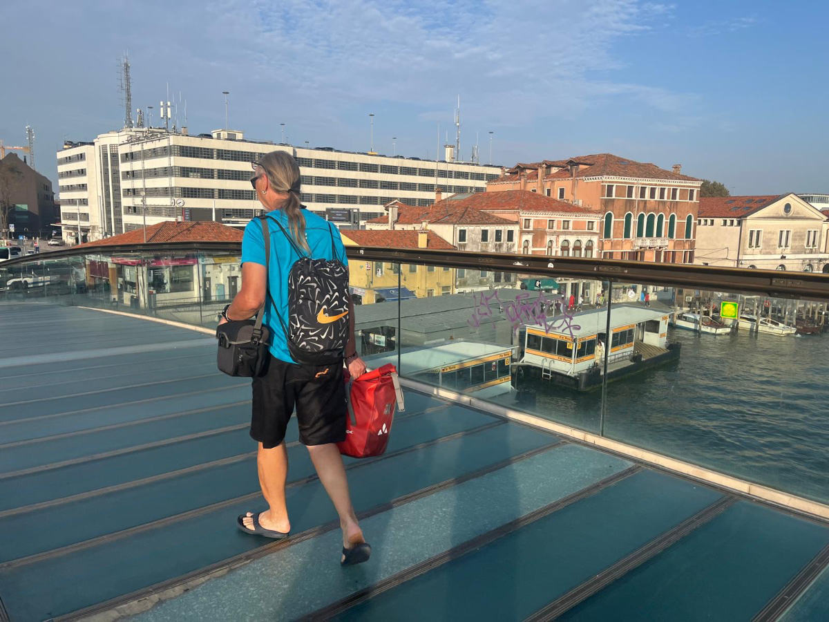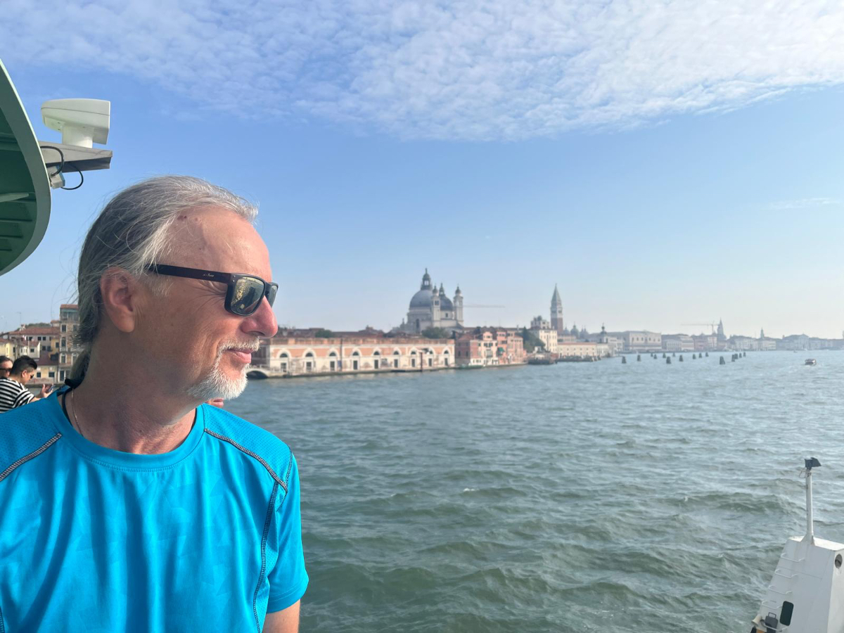 Venedig am Morgen beginnt wie der gestrige Tag geendet hat. Touristen und Einheimische am Weg zur Arbeit strömen vom Bahnhof bzw. Busterminal in Richtung Innenstadt, nur in der Nacht war es meist in umgekehrter Richtung. Jedenfalls ist um halb acht Uhr rege Betriebsamkeit, und wir nach einem Quickie (Frühstück) bereits wieder mitten drin. Im Bici Park wieder mal Verständnisschwierigkeiten, aber alles löst sich in Wohlgefallen, nur dass ich bereits um diese Zeit schon das erste mal durchschwitzt bin. Heute fahren wir mit der Fähre nach Punta Sabbioni, die Tickets haben wir bereits gestern gekauft, so erreichen wir früher als erwartet den Hafen und erreichen die Fähre um 8:20, voll Zeit gespart, weil Riki immer so drängelt ;-) In St.Nicolai (oder so ähnlich) sollen wir das Schiff wechseln, sprich umsteigen. Nur erfahren wir erst dort nach Nachfrage, dass es heute von diese Port keine Fähre nach Punta Sabbioni gibt, aber man verweist uns an eine nahegelegene Anlegestelle. Dort fährt eine Fähre, aber diese ist nicht wirklich für Radfahrer ausgelegt, speziell solche mit breitem Gepäck. Man heißt uns nicht gerade herzlich willkommen. Seí´s drum, wir erreichen unser Ziel und steigen in die Sättel. Es folgt bis Cavallino eine Fahrt auf herrlichen Radwegen, immer durch die Lagune oder entlang eines Flusses oder Kanals. In Cavallino machen wir eine erste Trinkpause in einer netten Bar, es ist heute diesig bewölkt, nicht zu heiß aber sehr schwül - trinken, trinken ist angesagt! Weiter geht es im Hinterland von Jesolo, die Skyline vom Lido ist nur in der Ferne zu erkennen, zum Glück müssen wir dort nicht hin. Es folgen kilometerlange Geraden, man wünscht sich wenigstens mal eine Kurve, aber es geht nur geradeaus, kein Ende in Sicht. Ein Schild am Straßenrand weist darauf hin, wir befinden uns nun im Reisland. Rechts der Strasse der Kanal, links über Kilometer eine Pappelallee, und dahinter endlose sattgrüne Reisfelder. Eine willkommene Abwechslung, darüber nachzusinnen, dass Reis nicht nur aus China kommt. Und bald darauf ist auch schon das heutige Tagesziel erreicht, Brian :-) Unser Quartier liegt am Zusammenfluss zweier Kanäle, hier ist auch der Liegeplatz/Marina einiger schöner Boote, 300.000 € aufwärts. Es gibt zwei großzügige Pools hier, und nach dem dringend notwendigen Wäschewaschen, verbringen wir den ganzen restlichen Tag am und im Pool, denn mittlerweile haben sich alle Wolken verzogen, und es ist wieder HOT as usual. Ich hoffe es bleibt so, doch der Wetterbericht verheißt für morgen leider Regen. Auch ok, solange es keine Unwetter gibt :-)