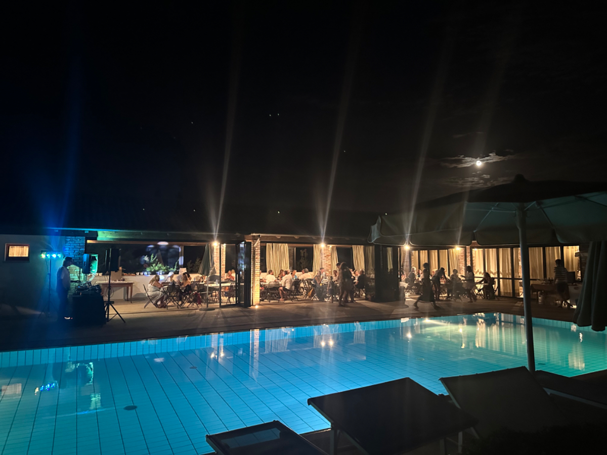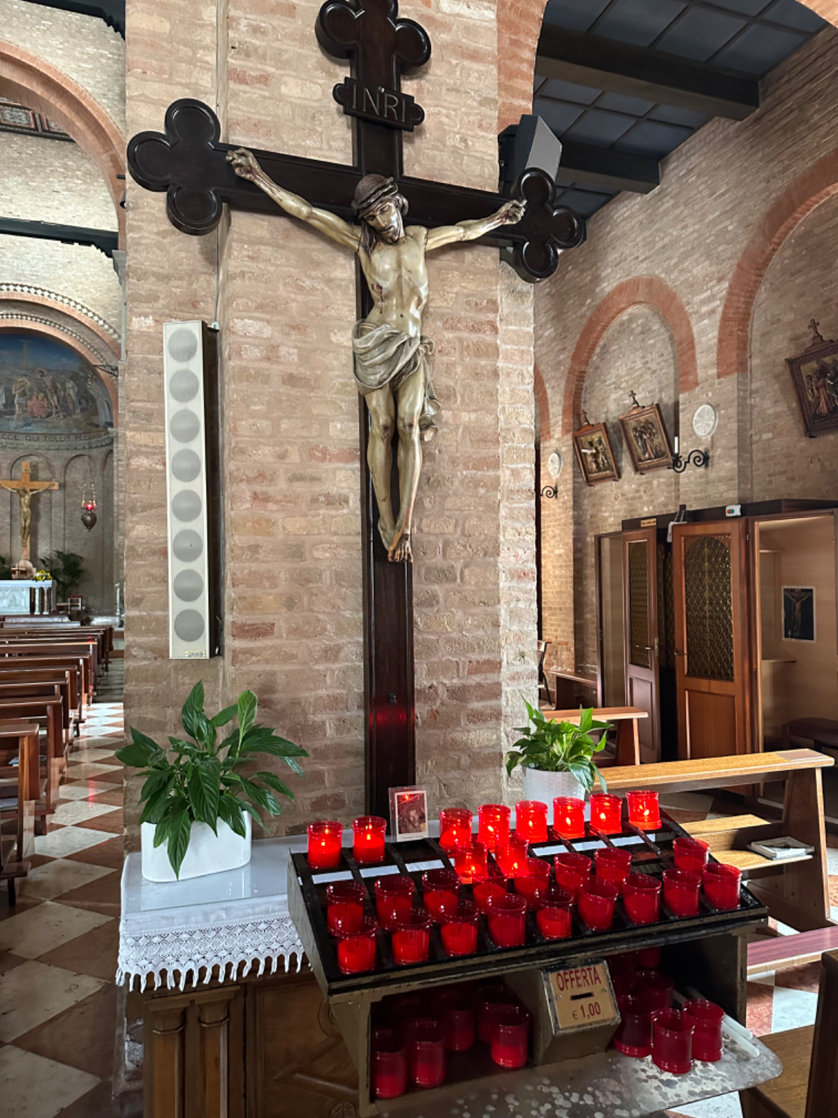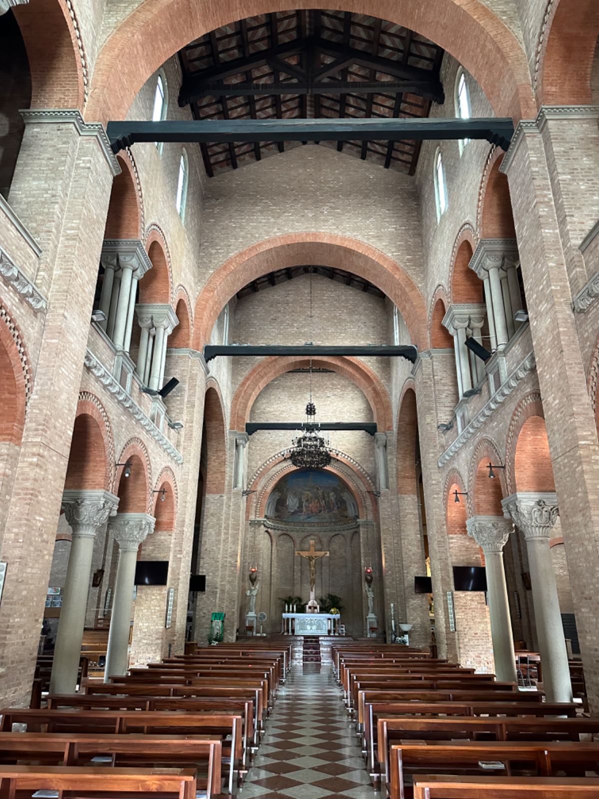 Venedig am Morgen beginnt wie der gestrige Tag geendet hat. Touristen und Einheimische am Weg zur Arbeit strömen vom Bahnhof bzw. Busterminal in Richtung Innenstadt, nur in der Nacht war es meist in umgekehrter Richtung. Jedenfalls ist um halb acht Uhr rege Betriebsamkeit, und wir nach einem Quickie (Frühstück) bereits wieder mitten drin. Im Bici Park wieder mal Verständnisschwierigkeiten, aber alles löst sich in Wohlgefallen, nur dass ich bereits um diese Zeit schon das erste mal durchschwitzt bin. Heute fahren wir mit der Fähre nach Punta Sabbioni, die Tickets haben wir bereits gestern gekauft, so erreichen wir früher als erwartet den Hafen und erreichen die Fähre um 8:20, voll Zeit gespart, weil Riki immer so drängelt ;-) In St.Nicolai (oder so ähnlich) sollen wir das Schiff wechseln, sprich umsteigen. Nur erfahren wir erst dort nach Nachfrage, dass es heute von diese Port keine Fähre nach Punta Sabbioni gibt, aber man verweist uns an eine nahegelegene Anlegestelle. Dort fährt eine Fähre, aber diese ist nicht wirklich für Radfahrer ausgelegt, speziell solche mit breitem Gepäck. Man heißt uns nicht gerade herzlich willkommen. Seí´s drum, wir erreichen unser Ziel und steigen in die Sättel. Es folgt bis Cavallino eine Fahrt auf herrlichen Radwegen, immer durch die Lagune oder entlang eines Flusses oder Kanals. In Cavallino machen wir eine erste Trinkpause in einer netten Bar, es ist heute diesig bewölkt, nicht zu heiß aber sehr schwül - trinken, trinken ist angesagt! Weiter geht es im Hinterland von Jesolo, die Skyline vom Lido ist nur in der Ferne zu erkennen, zum Glück müssen wir dort nicht hin. Es folgen kilometerlange Geraden, man wünscht sich wenigstens mal eine Kurve, aber es geht nur geradeaus, kein Ende in Sicht. Ein Schild am Straßenrand weist darauf hin, wir befinden uns nun im Reisland. Rechts der Strasse der Kanal, links über Kilometer eine Pappelallee, und dahinter endlose sattgrüne Reisfelder. Eine willkommene Abwechslung, darüber nachzusinnen, dass Reis nicht nur aus China kommt. Und bald darauf ist auch schon das heutige Tagesziel erreicht, Brian :-) Unser Quartier liegt am Zusammenfluss zweier Kanäle, hier ist auch der Liegeplatz/Marina einiger schöner Boote, 300.000 € aufwärts. Es gibt zwei großzügige Pools hier, und nach dem dringend notwendigen Wäschewaschen, verbringen wir den ganzen restlichen Tag am und im Pool, denn mittlerweile haben sich alle Wolken verzogen, und es ist wieder HOT as usual. Ich hoffe es bleibt so, doch der Wetterbericht verheißt für morgen leider Regen. Auch ok, solange es keine Unwetter gibt :-)