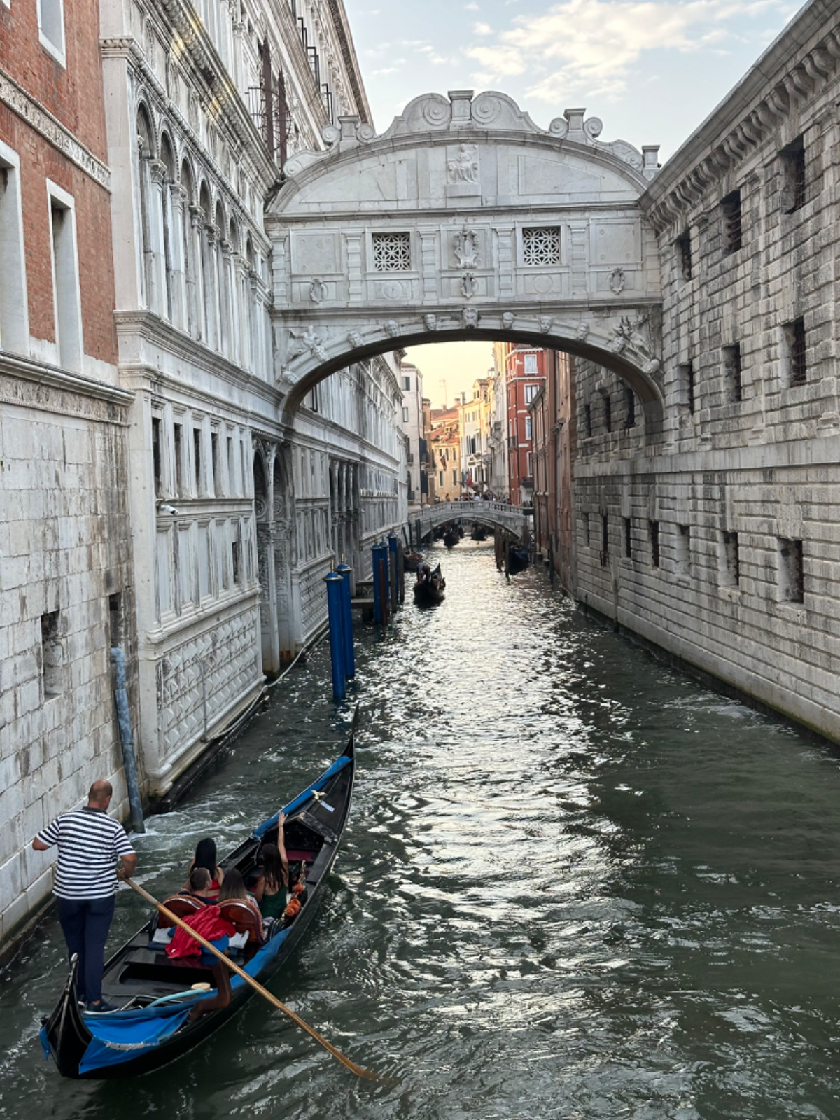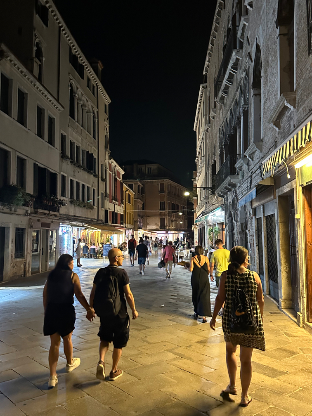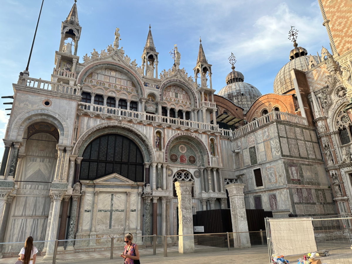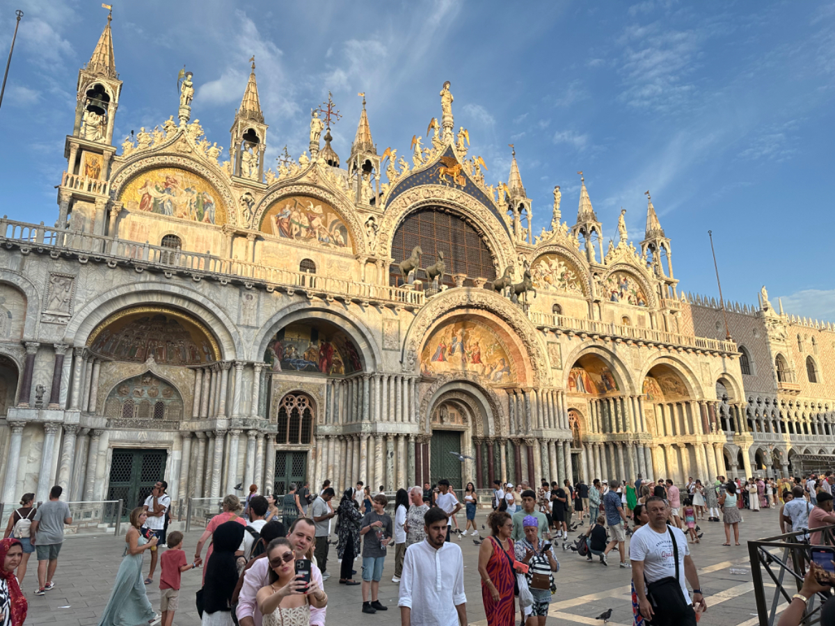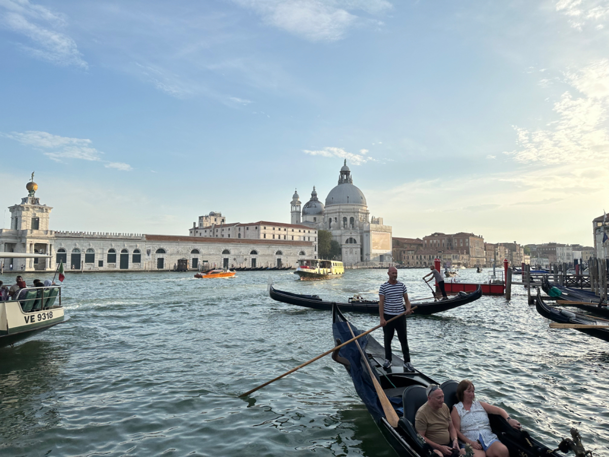 Aufgepackt und Abfahrt um 8:30, es ist warm, aber vielmehr ist es heute extrem schwül. Zum Glück sind es nur ca. 35km bis Venedig. Die Fahrt ist unspektakulär, Landstraßen und Radwege wechseln sich ab. Wir treten ordentlich in die Pedale, um vor der grossen Mittagshitze anzukommen. Der Schweiß rinnt in Strömen, als wir Mestre erreichen stoppen wir an der erstbesten Bar um den Flüssigkeitsverlust auszugleichen ;-) Diese Bar ist mehr eine schäbige Kneipe, passt aber gut zu dieser Stadt die so gar nichts anziehendes an sich hat. Zudem hat man das Gefühl, im nichteuropäischen Ausland zu sein. Über ein Wirrwarr an Radwegen erreichen wir eine Bahnunterführung. Eine steile, schmale Treppe führt nach unten und nach der Unterführung ebenso wieder hinauf. Als ob wir nicht schon genug geschwitzt hätten, hieven wir zu zweit unsere Räder wieder rauf. Bald steigt die Stimmung wieder, als Venedig in der Ferne sichtbar wird :-) Über - ich weiß nicht ob es eine Brücke ist - fahren Züge, Busse, Strassenbahnen, unzählige Autos und wir zwei nach Venedig hinein. Hier gibt es den Bici Park, ein Teil einer Tiefgarage, ausgestattet mit Aufbewahrungsboxen für Fahrräder, sogar mit Lademöglichkeit. Nach ein paar Verständigungsschwierigkeiten haben wir die Räder sicher verstaut und machen uns auf die Suche nach unserem Hotel Belle Epoque. Es liegt in der Nähe des Bahnhofs, entsprechend sind die Menschenmassen die in die Stadt hineinströmen, und es ist stickig heiß und uns klebt das Gewand am Körper. Einchecken können wir noch nicht, das Zimmer ist noch nicht fertig :-( Wir trinken ein wirklich gutes Ankommensbier und schlendern halt durch die Gassen, bis wir endlich duschen können. Unser Zimmer - eher eine Kammer - ist wohl im Stil den man von einem alten Hotel hier erwartet, ein Badezimmer in dem man zur Platzangst neigt, dafür mit Aussicht aus dem Fenster auf ein Baugerüst, aber sonst wirklich ganz ok ;-) Jetzt waren wir gerade essen, sehr gut gegessen, die Preise - Venedig halt. Riki hat für den Abend ein Konzert in einer Kirche gebucht, wir werden uns die vier Jahreszeiten von Antonio Vivaldi anhören/ansehen, somit wird der Kulturauftrag dieses Urlaubs auch erfüllt :-) Zuvor fahren wir mit dem Vaporetto zum Markusplatz, Venezia Sightseeing ……