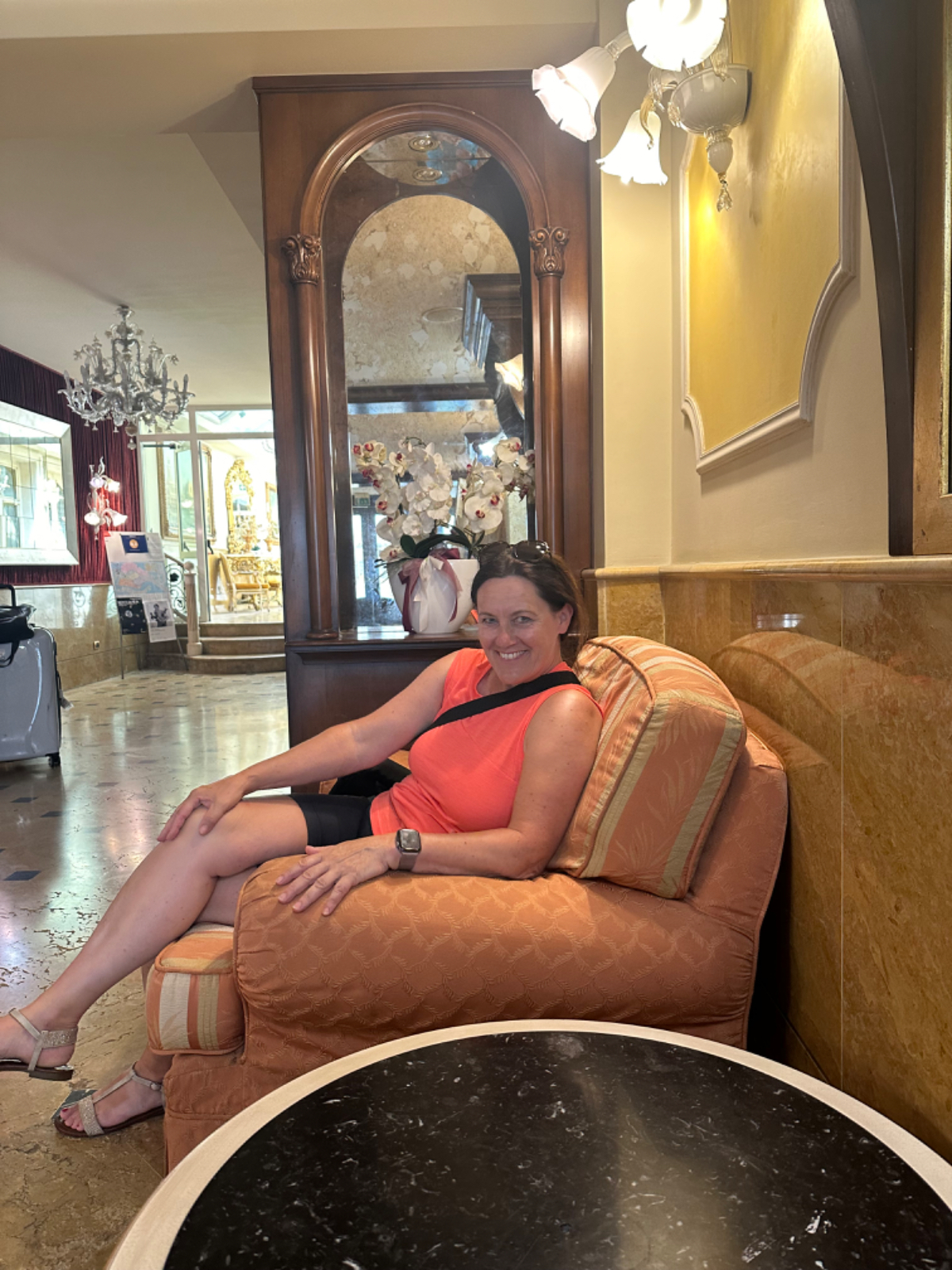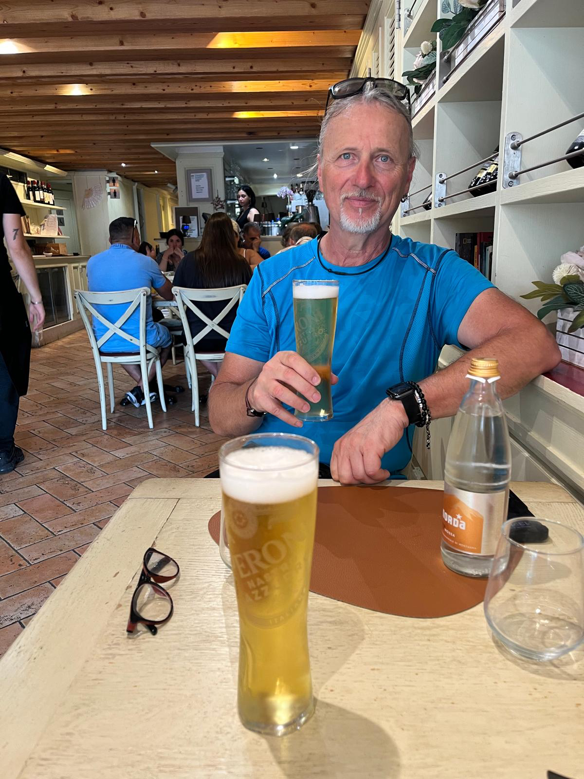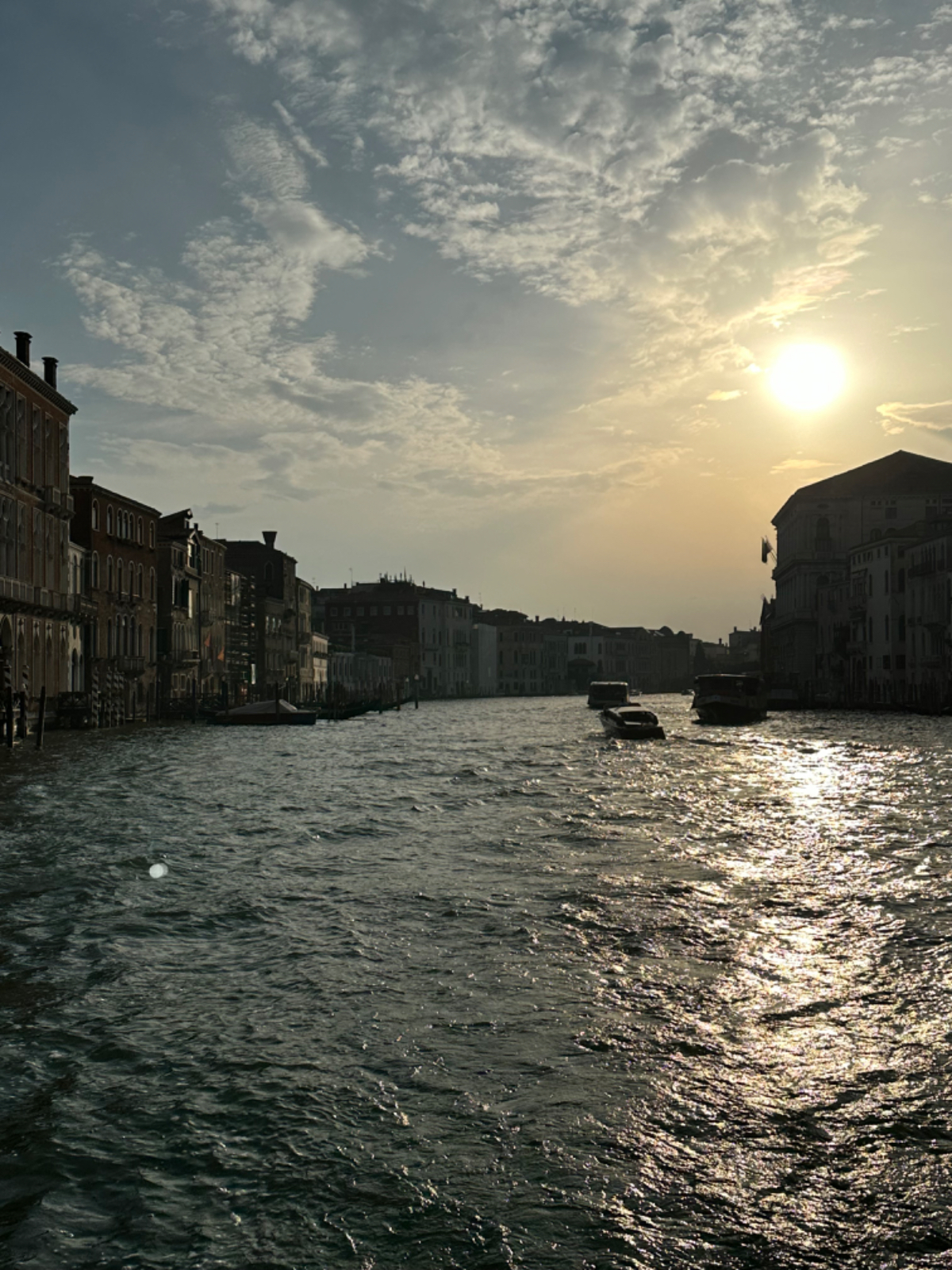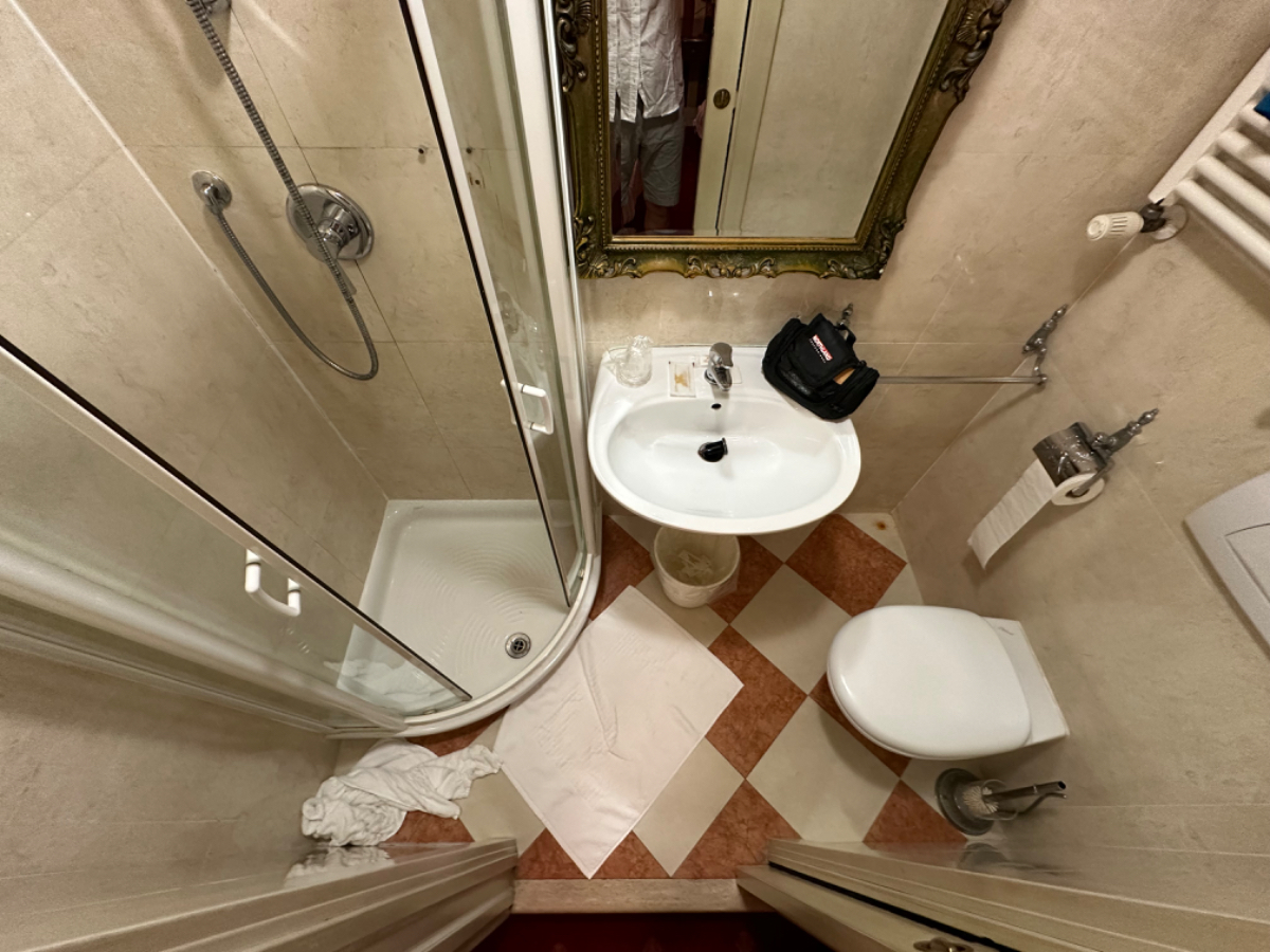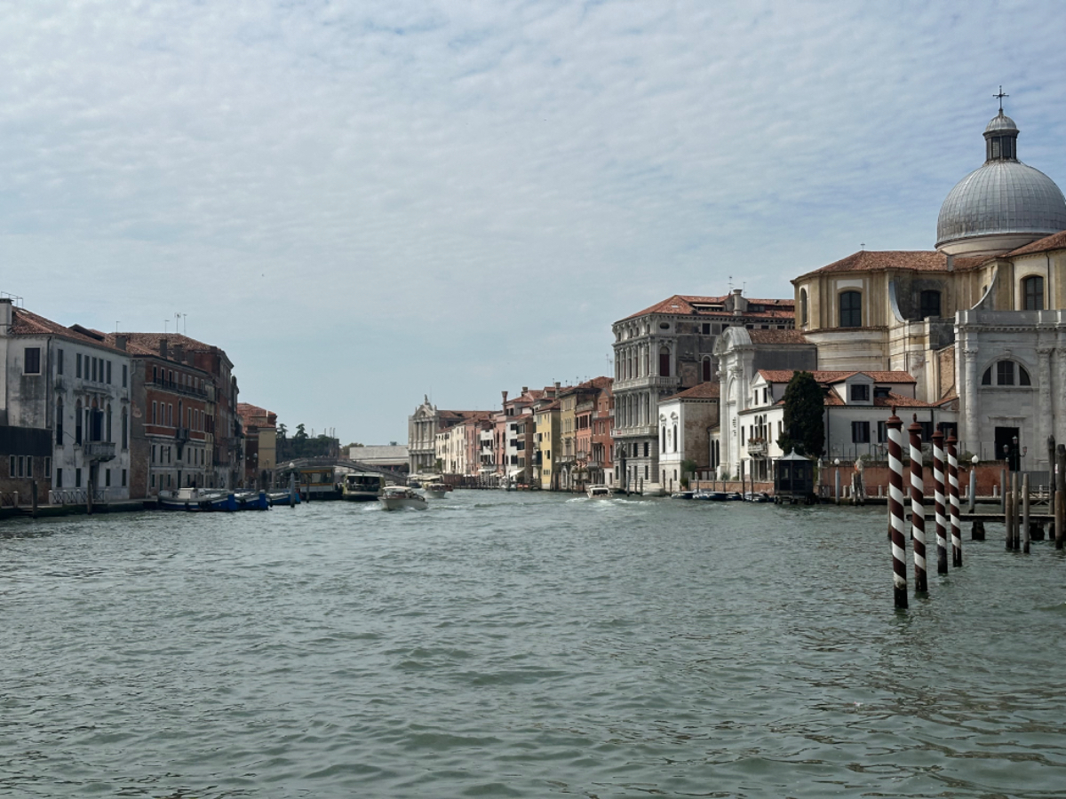 Aufgepackt und Abfahrt um 8:30, es ist warm, aber vielmehr ist es heute extrem schwül. Zum Glück sind es nur ca. 35km bis Venedig. Die Fahrt ist unspektakulär, Landstraßen und Radwege wechseln sich ab. Wir treten ordentlich in die Pedale, um vor der grossen Mittagshitze anzukommen. Der Schweiß rinnt in Strömen, als wir Mestre erreichen stoppen wir an der erstbesten Bar um den Flüssigkeitsverlust auszugleichen ;-) Diese Bar ist mehr eine schäbige Kneipe, passt aber gut zu dieser Stadt die so gar nichts anziehendes an sich hat. Zudem hat man das Gefühl, im nichteuropäischen Ausland zu sein. Über ein Wirrwarr an Radwegen erreichen wir eine Bahnunterführung. Eine steile, schmale Treppe führt nach unten und nach der Unterführung ebenso wieder hinauf. Als ob wir nicht schon genug geschwitzt hätten, hieven wir zu zweit unsere Räder wieder rauf. Bald steigt die Stimmung wieder, als Venedig in der Ferne sichtbar wird :-) Über - ich weiß nicht ob es eine Brücke ist - fahren Züge, Busse, Strassenbahnen, unzählige Autos und wir zwei nach Venedig hinein. Hier gibt es den Bici Park, ein Teil einer Tiefgarage, ausgestattet mit Aufbewahrungsboxen für Fahrräder, sogar mit Lademöglichkeit. Nach ein paar Verständigungsschwierigkeiten haben wir die Räder sicher verstaut und machen uns auf die Suche nach unserem Hotel Belle Epoque. Es liegt in der Nähe des Bahnhofs, entsprechend sind die Menschenmassen die in die Stadt hineinströmen, und es ist stickig heiß und uns klebt das Gewand am Körper. Einchecken können wir noch nicht, das Zimmer ist noch nicht fertig :-( Wir trinken ein wirklich gutes Ankommensbier und schlendern halt durch die Gassen, bis wir endlich duschen können. Unser Zimmer - eher eine Kammer - ist wohl im Stil den man von einem alten Hotel hier erwartet, ein Badezimmer in dem man zur Platzangst neigt, dafür mit Aussicht aus dem Fenster auf ein Baugerüst, aber sonst wirklich ganz ok ;-) Jetzt waren wir gerade essen, sehr gut gegessen, die Preise - Venedig halt. Riki hat für den Abend ein Konzert in einer Kirche gebucht, wir werden uns die vier Jahreszeiten von Antonio Vivaldi anhören/ansehen, somit wird der Kulturauftrag dieses Urlaubs auch erfüllt :-) Zuvor fahren wir mit dem Vaporetto zum Markusplatz, Venezia Sightseeing ……