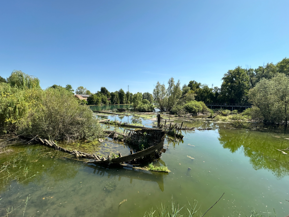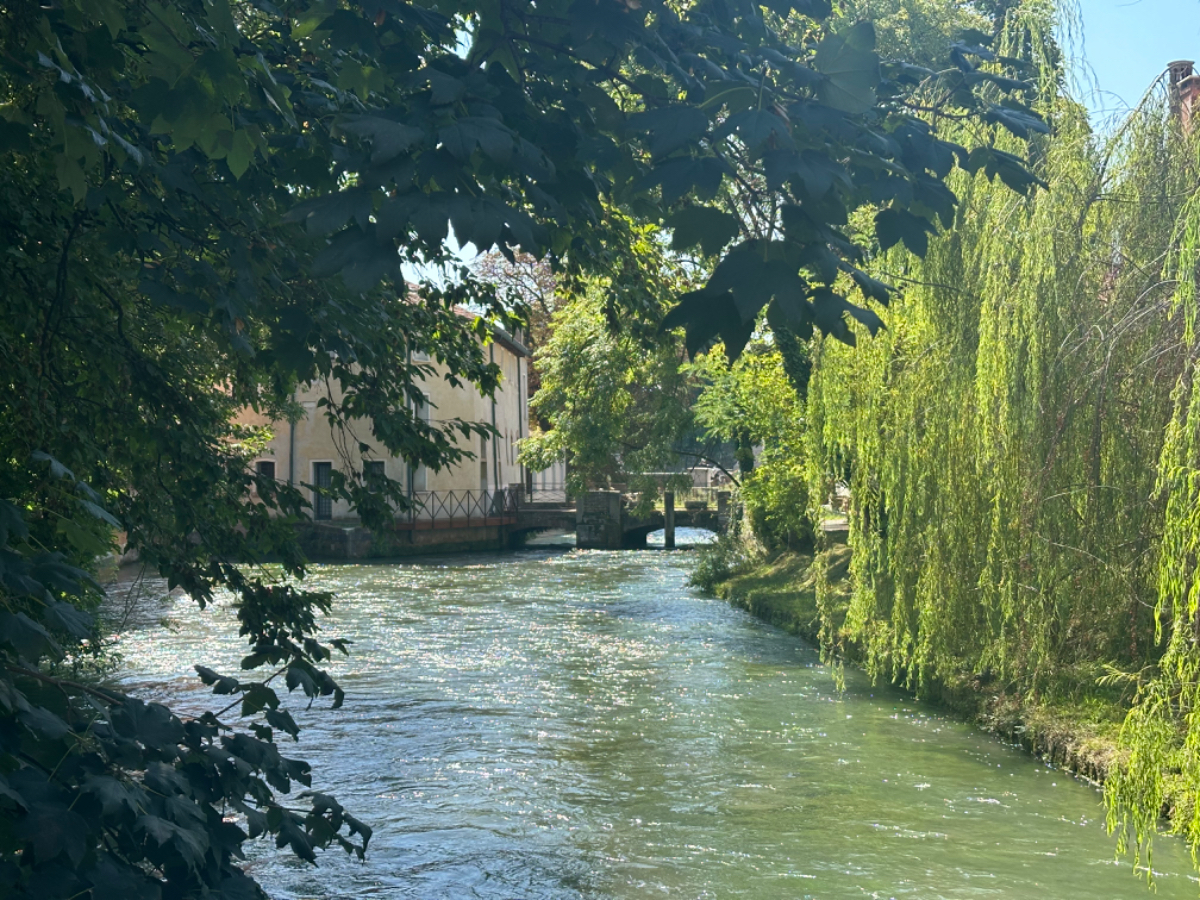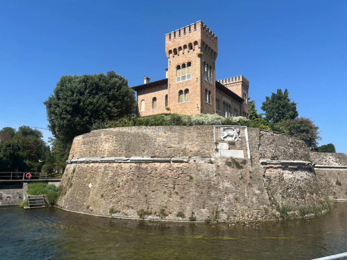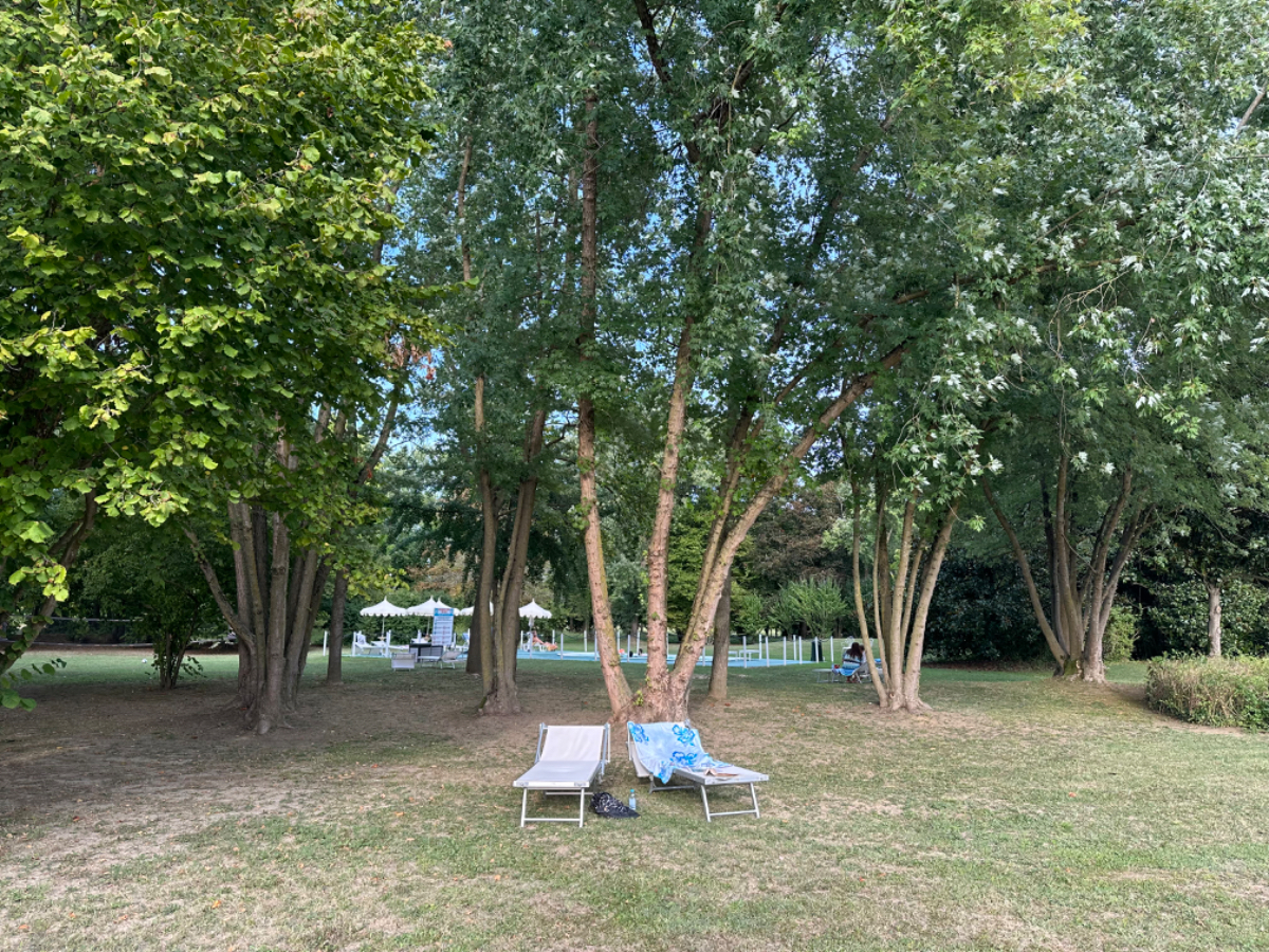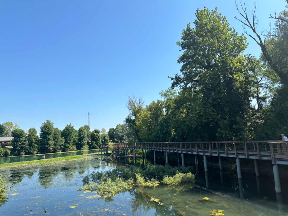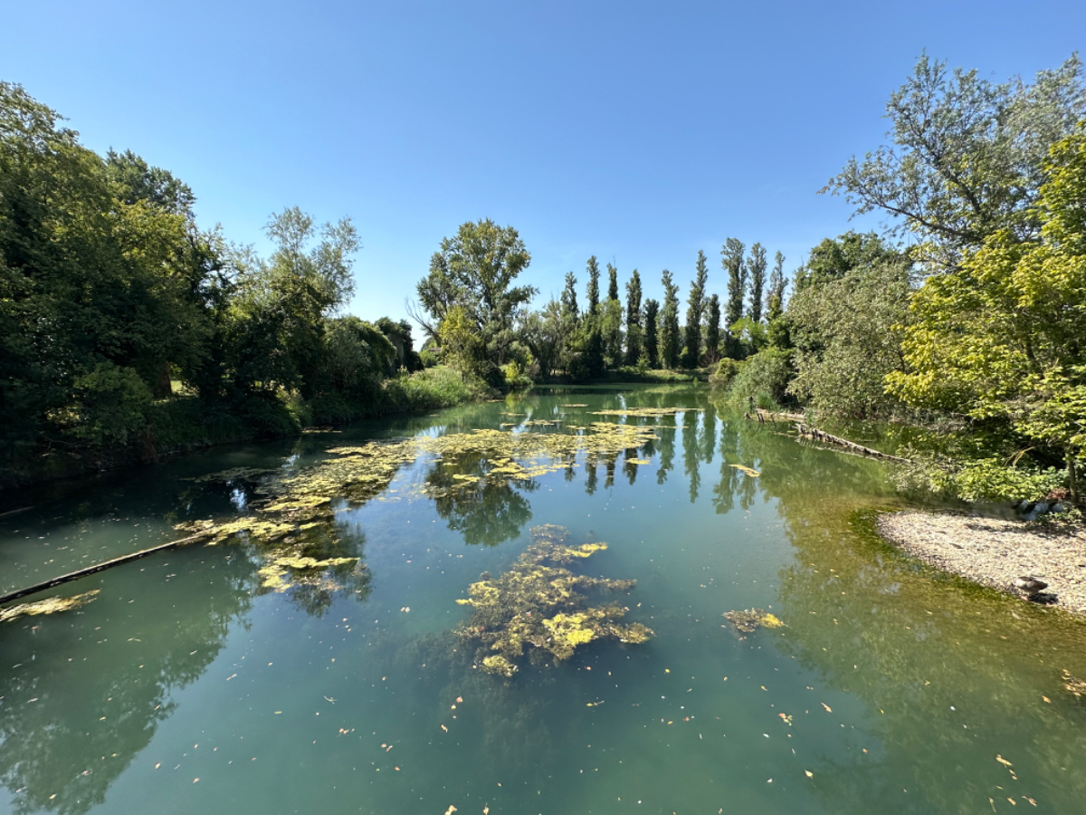Aus Treviso raus folgen wir dem Fluß Sile, größtenteils bis zu unserem heutigen Ziel. Wir durchqueren ein Naturschutzgebiet entlang des Sile, schattige Wege, Stege und Brücken und nach jeder Flußbiegung eröffnet sich uns ein schönerer Anblick als zuvor. Hier werde ich mal - natürlich mit Riki - mit einem Hausboot hochfahren :-) Um 13 Uhr erreichen wir unser Quartier, ein schönes Hotel, eingebettet in einen großen Park, sehr cool! Wir sind zu früh, also gehen wir zuerst auf ein Ankommensbier. Dem jungen Kellner passiert ein Missgeschick, er zerbricht ein Glas und gießt den Inhalt über den Tisch und auch Rikis Shirt stinkt danach nach Bier. Das Gute daran, wir mussten unsere Zeche nicht bezahlen. (Danke Bernd für die Einladung, wir kommen gerne in ein nächsten Tagen darauf zurück :-) Nachdem heute ein Feiertag ist, hat so gut wie kein Lokal um die Mittagszeit geöffnet, aber wieder Glück gehabt, in einer Bar essen wir schmackhafte Spaghetti - und bezahlen für zwei Portionen und ein Liter Mineralwasser 15 Euro :-) Den restlichen Tag verbringen wir bis zum Abend am hoteleigenen Pool, der mitten im Park liegt, bei angenehmen 34 Grad, mit Campari und Aperol Spritz, WHAT A DAY! :-) Und morgen Venezia……